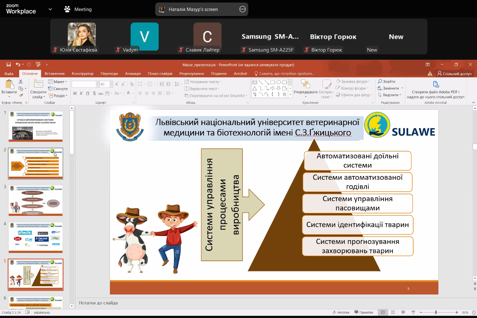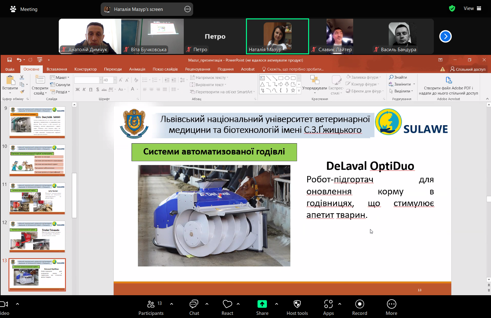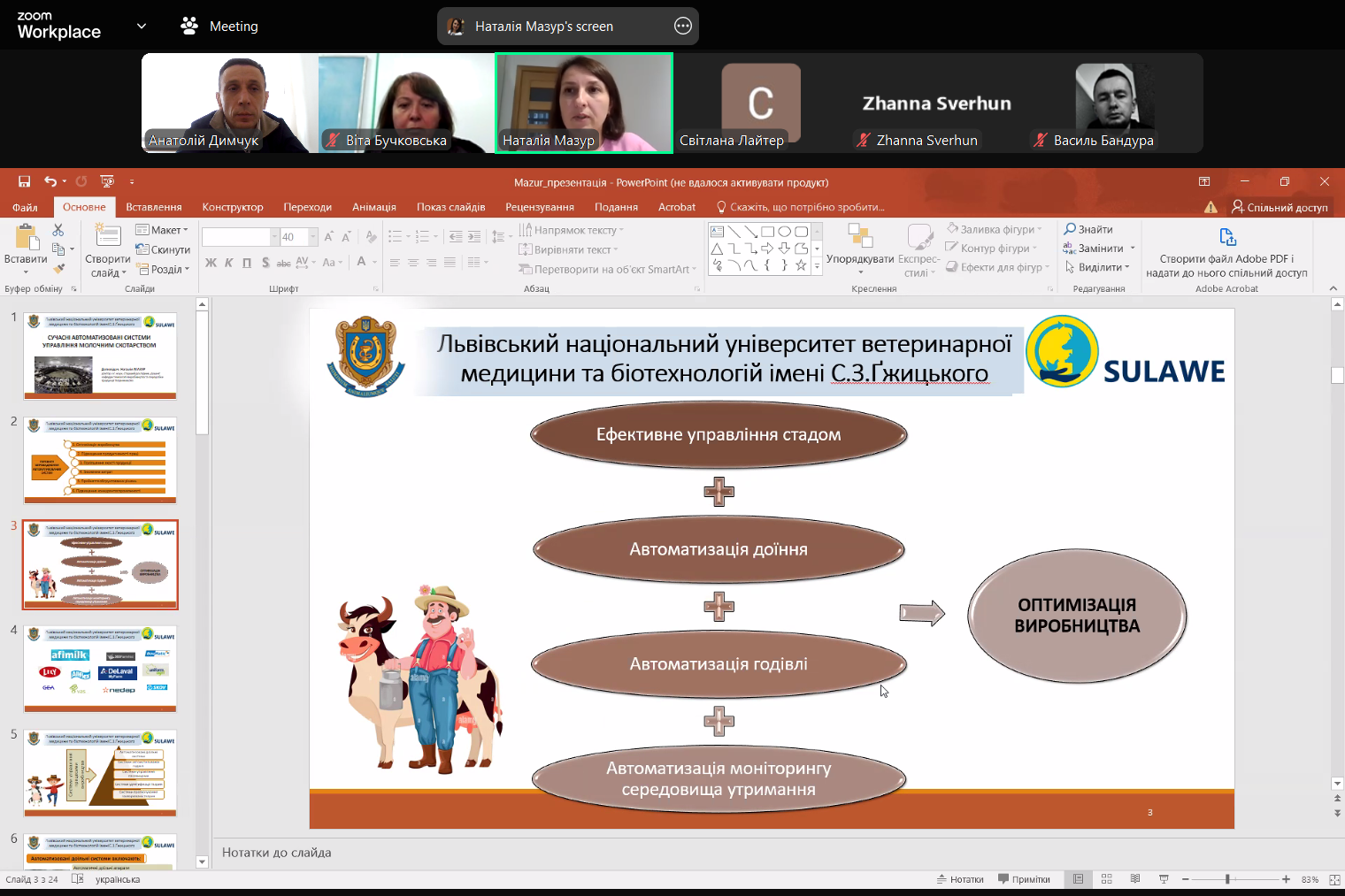 Лекція була проведена в рамках вивчення навчальної дисципліни «Сучасні тенденції розвитку технологій у тваринництві» з використанням платформи Zoom та доповнювалася цікавою і змістовною мультимедійною презентацією.