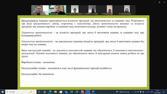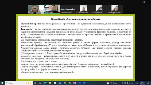 Під час лекції здобувачі вищої освіти проявляли зацікавленість, задавали запитання стосовно обладнання харчової промисловості. На всі запитання були дані повні та вичерпні відповіді.