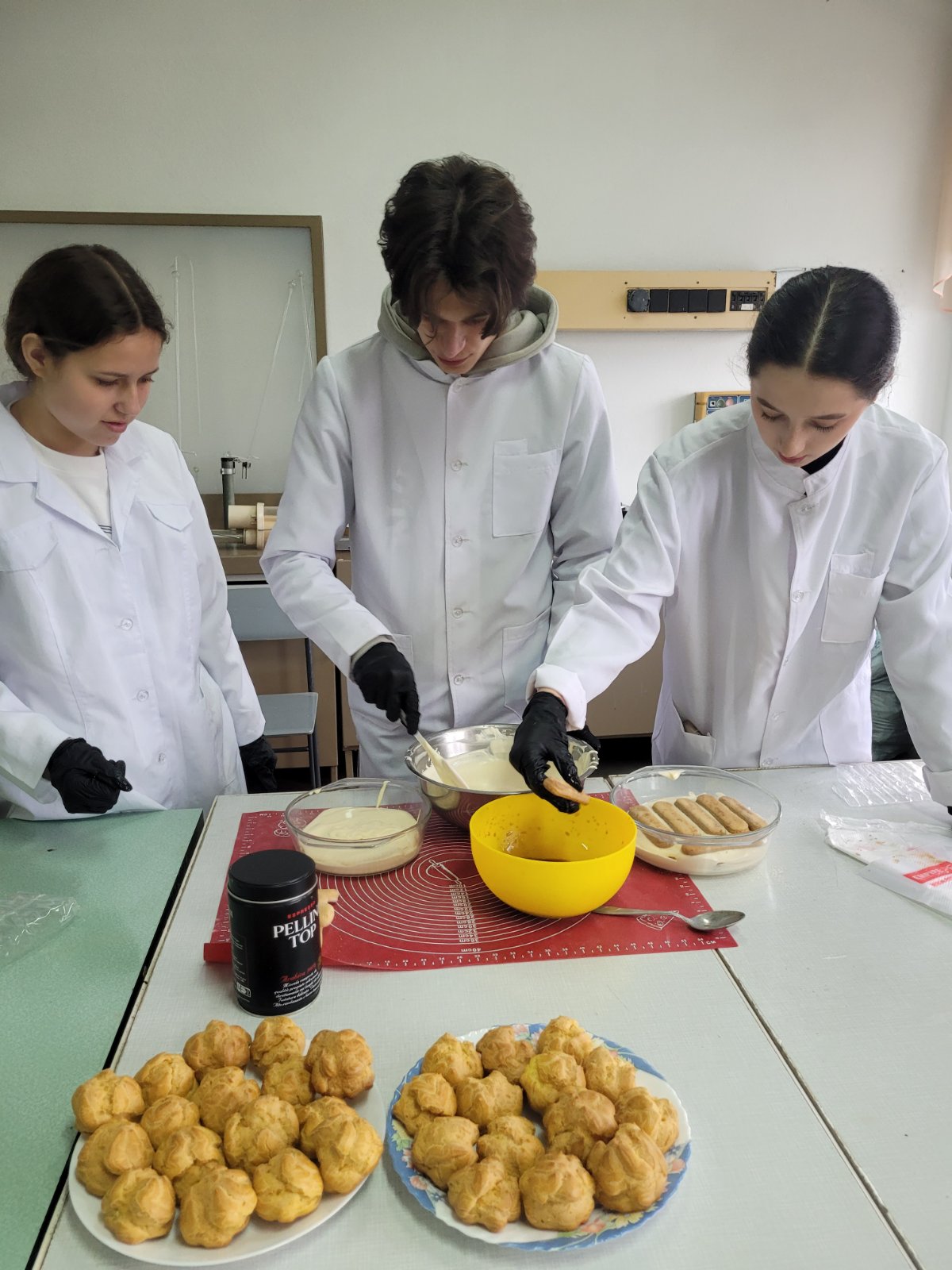 Здобувачі мали нагоду показати рівень своїх знань та практичних навичок при виробництві повітряних заварних тістечок, тістечок шу та десерту тірамісу.