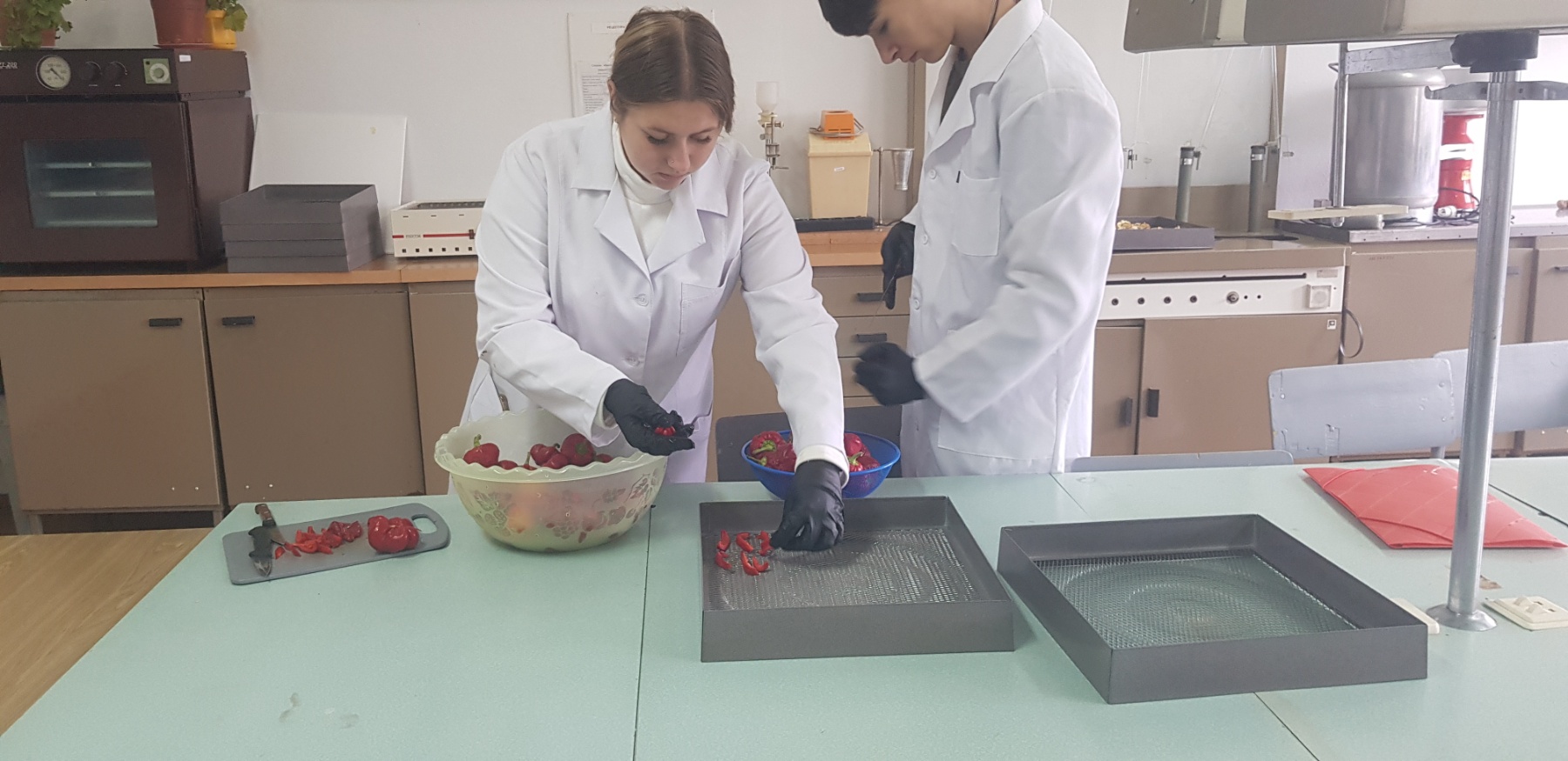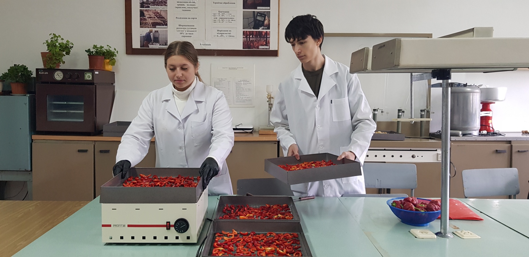 Створення належних умов для зберігання не лише харчових продуктів, а й допоміжних матеріалів для переробки сировини, а також предметів і матеріалів, що контактують з продуктами, є основною умовою санітарно-гігієнічних правил ведення технологічних процесів. Так, під час вивчення дисципліни здобувачі 2 курсу вивчали процеси висушування солодкого перцю при різних температурних режимах. Обираючи різні способи висушування солодкого перцю, перш за все маємо зберегти високу якість, вміст вітаміну С, органолептичні показники, хімічний склад, біологічно активні речовини. Солодкий перець – овоч, який відрізняється солодким смаком, багатий на вітаміни групи В, РР, Е, А, антиоксиданти, мінерали (калій, магній), клітковину та є низькокалорійним. Перець широко використовується в салатах, супах, рагу, для фарширування та консервації, а залежно від кольору може мати різний смак і склад.