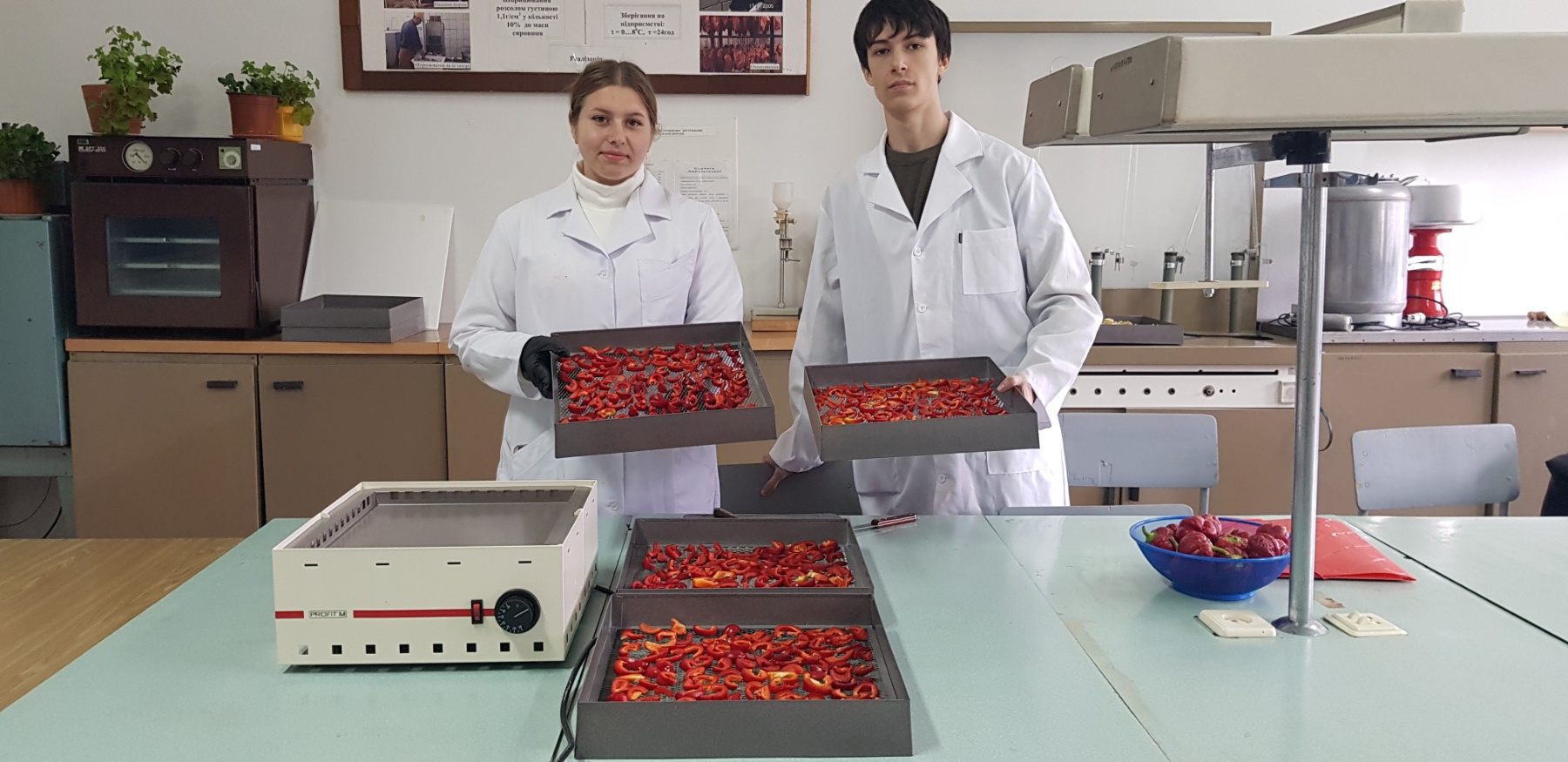 На заняттях здобувачі не тільки вивчають технологію висушування плодоовочевої продукції, але й виконують практичні завдання з метою порівняння різних режимів під час процесу (температури, тривалості процесу, вологості); порівнюють органолептичні та фізичні показники овочів, а також норму виходу готового продукту.
