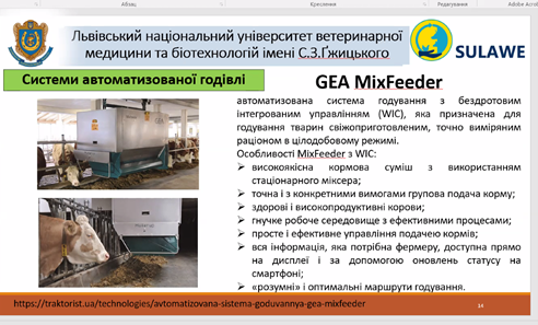 Саме тому гостьова лекція з дисципліни «Моделювання технологічних процесів у тваринництві» для здобувачів другого (магістерського) рівня вищої освіти освітньо-професійної програми «Технологія виробництва і переробки продукції тваринництва», яку проведено доктором сільськогосподарських наук, доцентом кафедри технології виробництва та переробки продукції тваринництва Львівського національного університету ветеринарної медицини та біотехнологій імені С.З. ҐЖИЦЬКОГО Наталією Петрівною МАЗУР, була присвячена сучасним автоматизованим системам управління, які використовують у молочному скотарстві.