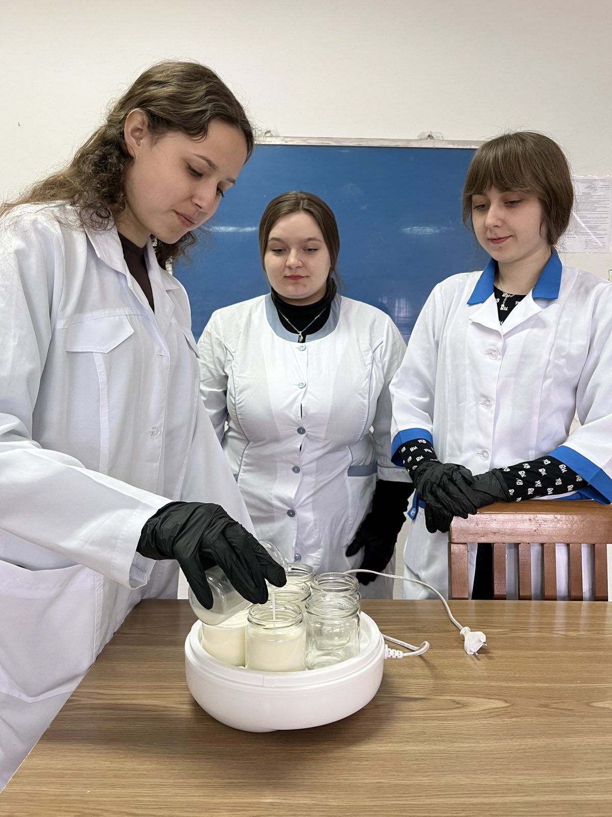 Молоко є природною еконішею для молочнокислих бактерій. Наразі, не слід забувати, що воно не завжди здатне забезпечити ефективний розвиток заквашувальної мікрофлори, що може визначатися як природними чинниками, такі технологічними. Прикладами природних чинників є: сезонні зміни складу молока, які стають найвідчутнішими у весняному молоці. Саме тому засідання наукового студентського гуртка «ХАРЧОВИК» здобувачів спеціальності G13 «ХАРЧОВІ ТЕХНОЛОГІЇ» було присвячено вивченню складу і властивостей заквасок нового покоління. Здобувачі, опрацювавши значну кількість літературних джерел і лекційний матеріал з дисципліни «Мікробіологія харчових продуктів» підготовили доповіді з вказаної теми. Першочергово визначали якісні показники молочної сировини на сучасному приладі – аналізаторі молока. Наступним етапом було внесення закваски у молоко для виготовлення йогурту. Органолептичні дослідження готового продукту проводили по закінченню технологічного процесу.