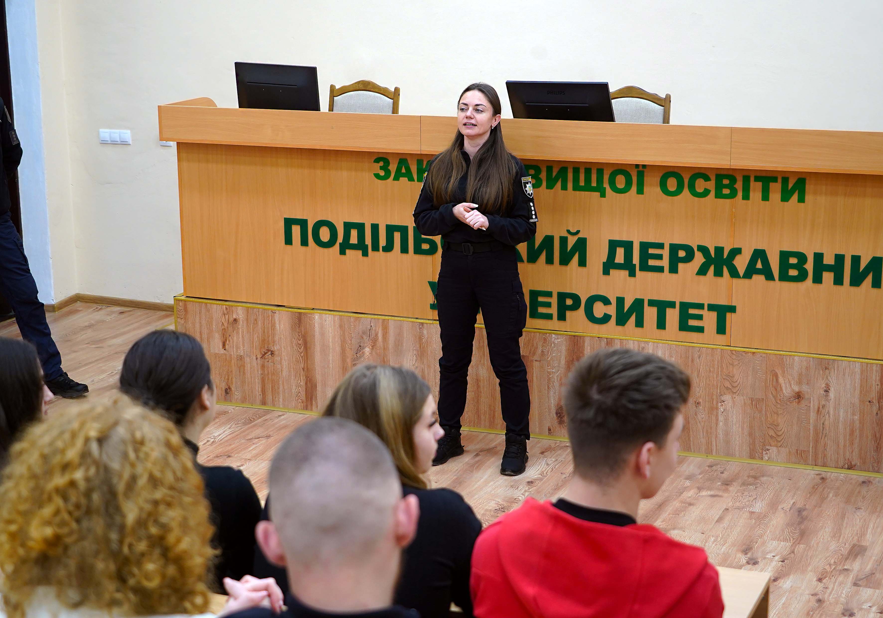 Подальшу дискусію продовжили представники сектору ювенальної превенції Кам’янець-Подільського районного управління поліції. Капітан поліції Вікторія ВОЛЬСЬКА детально розкрила правові аспекти протидії булінгу. Вона пояснила, які дії офіційно визнаються цькуванням, хто несе відповідальність і як поліція реагує на повідомлення від студентів чи працівників закладу. Її виступ підкреслив, що правова поінформованість - один із ключових факторів зменшення випадків агресії.