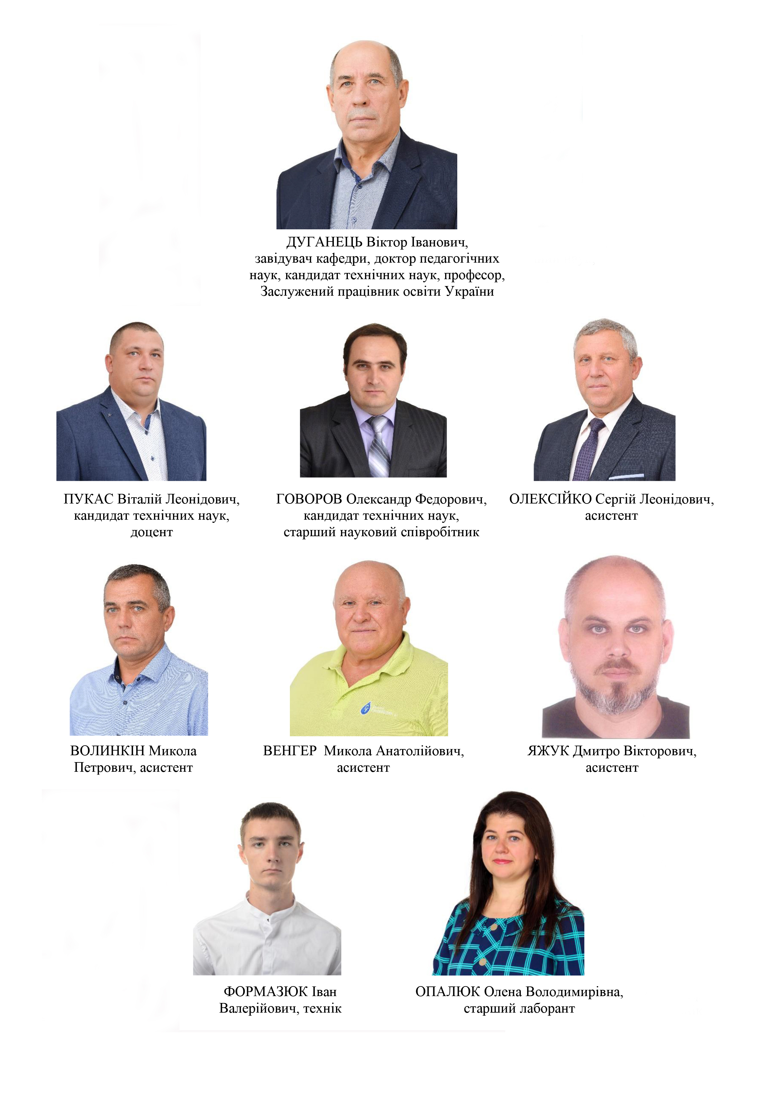 Сьогодні навчальний процес забезпечують сім науково-педагогічних працівників кафедри: доктор наук (професор), два кандидати наук (доцент, старший науковий співробітник), чотири асистенти, а також старший лаборант і два техніки, які здійснюють освітній процес з підготовки здобувачів вищої освіти інженерно-технічного факультету, факультету енергетики та інформаційних технологій та навчально-наукового інституту харчових технологій денної і заочної форм навчання.