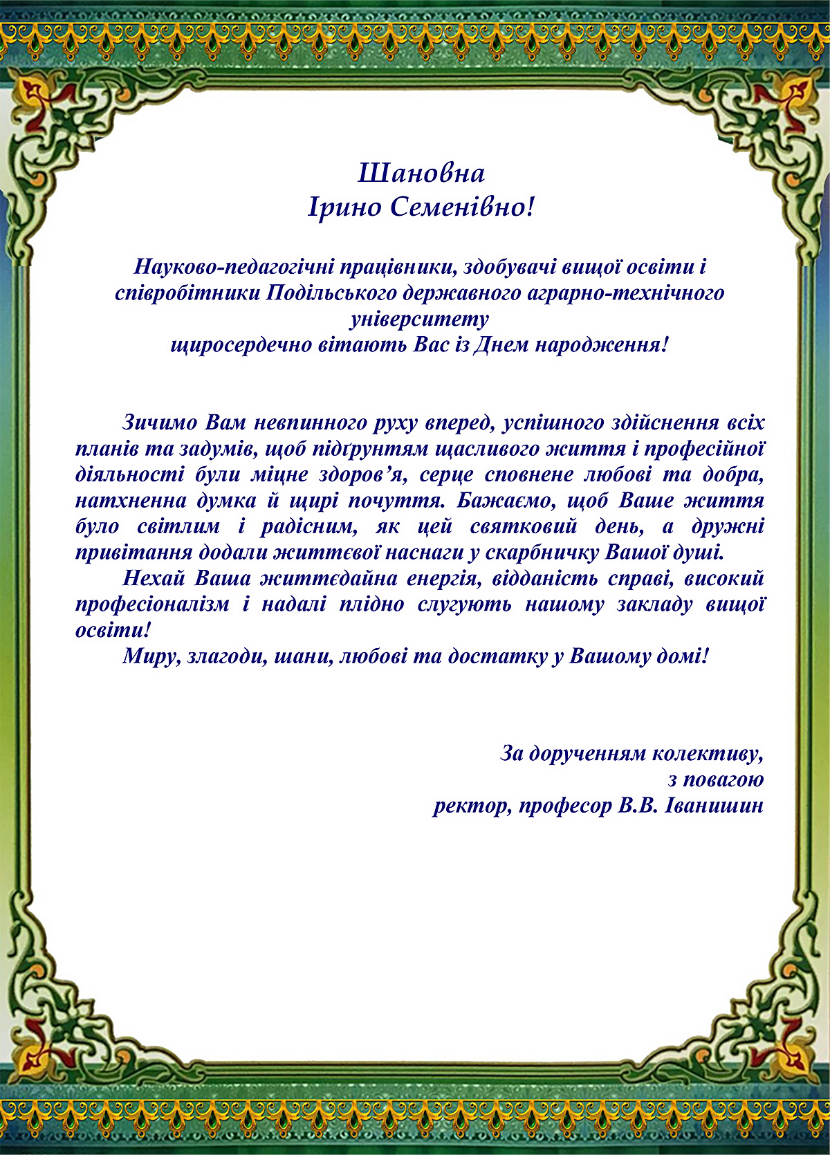 Вітаємо з Днем народження Яжук Ірину Семенівну!