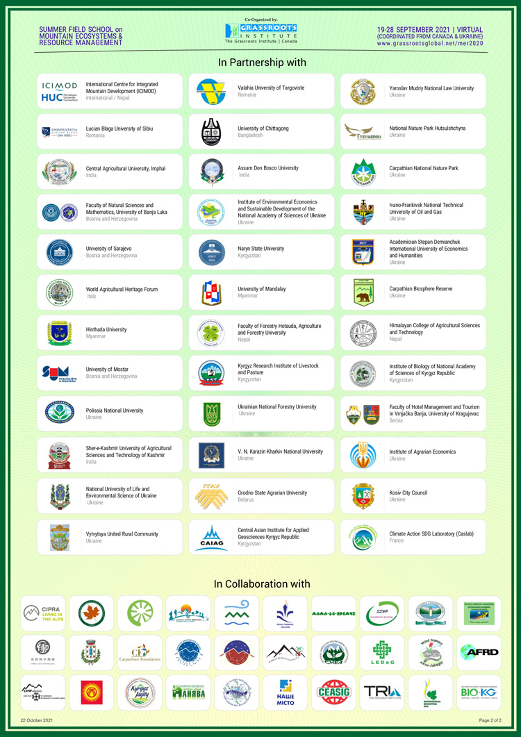 Акценти Літньої Польової Школи зосереджувались на цілях сталого розвитку та пов'язаних із цим питанням проблемах, в центрі уваги виступали гірські регіони, в тому числі Карпатський, що є особливо актуальним для України та її країн-сусідів. Освітньо-наукова програма проєкту складалася з технічних сесій та органічно поєднувала лекційний матеріал членів факультету-фасилітаторів та доповіді делегатів.