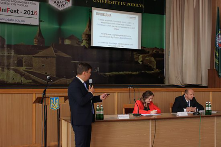 Для представників ЗМІ відбулася прес-конференція ректора ПДАТУ доктора економічних наук, професора , Заслуженого працівника сільського господарства України Іванишина Володимира Васильовича. На прес-конференції Володимир Васильович розповів про фестиваль «Агроуніфест-2016» та відповів на запитання журналістів.