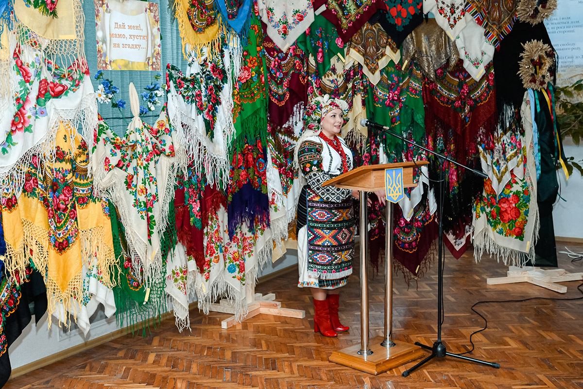У фойє головного корпусу була створена виставка-експозиція українських хусток, що нараховувала 64 види. Це презентування усіх шедеврів-хусток, що збереглися у родинах від прабабусь та бабусь з різних областей України…
