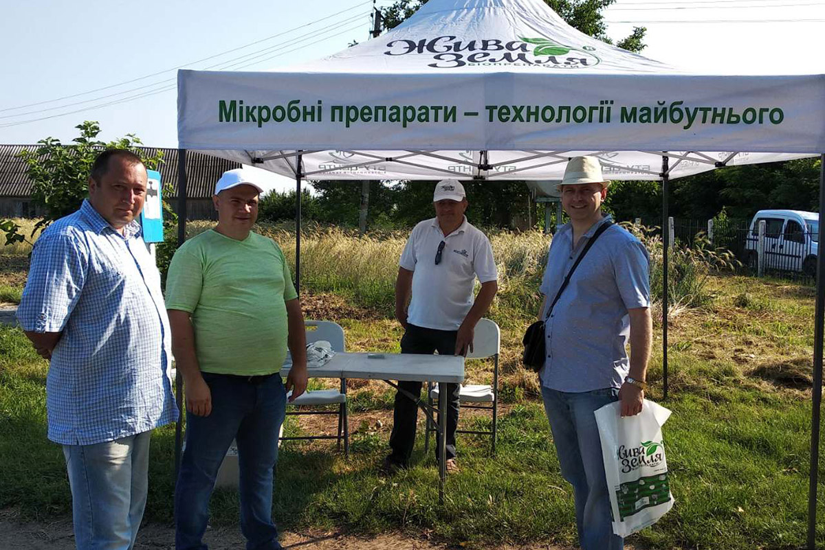 На Дні поля також були представлені досліди з вивчення ефективності застосування мікробіологічних препаратів компанії ПП "БТУ-ЦЕНТР" (доценти Пустова З.В., Гаврилюк В.Б.). Ефективність біопрепаратів вивчається на культурах: пшениця озима, ячмінь ярий, соя. На заході були присутні представники компанії ПП "БТУ-ЦЕНТР" – головний агроном компанії Ростоцький О.В., керівник регіонального структурного підрозділу Західного регіону Кожухар Є.В.
