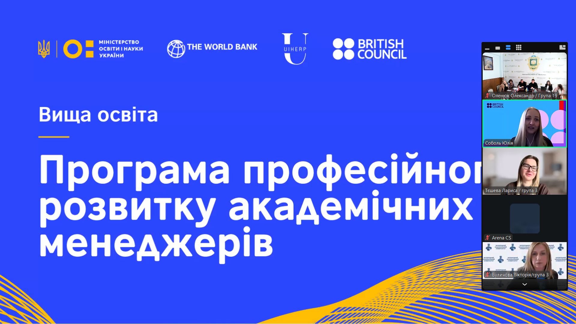 22 квітня 2026 року відбулася Міжнародна онлайн-конференція, що стала фінальним етапом другого циклу реалізації Програми професійного розвитку академічних менеджерів закладів вищої освіти України. Під час заходу команди презентували результати спільної роботи та представили інституційні проєкти змін, розроблені у процесі навчання.