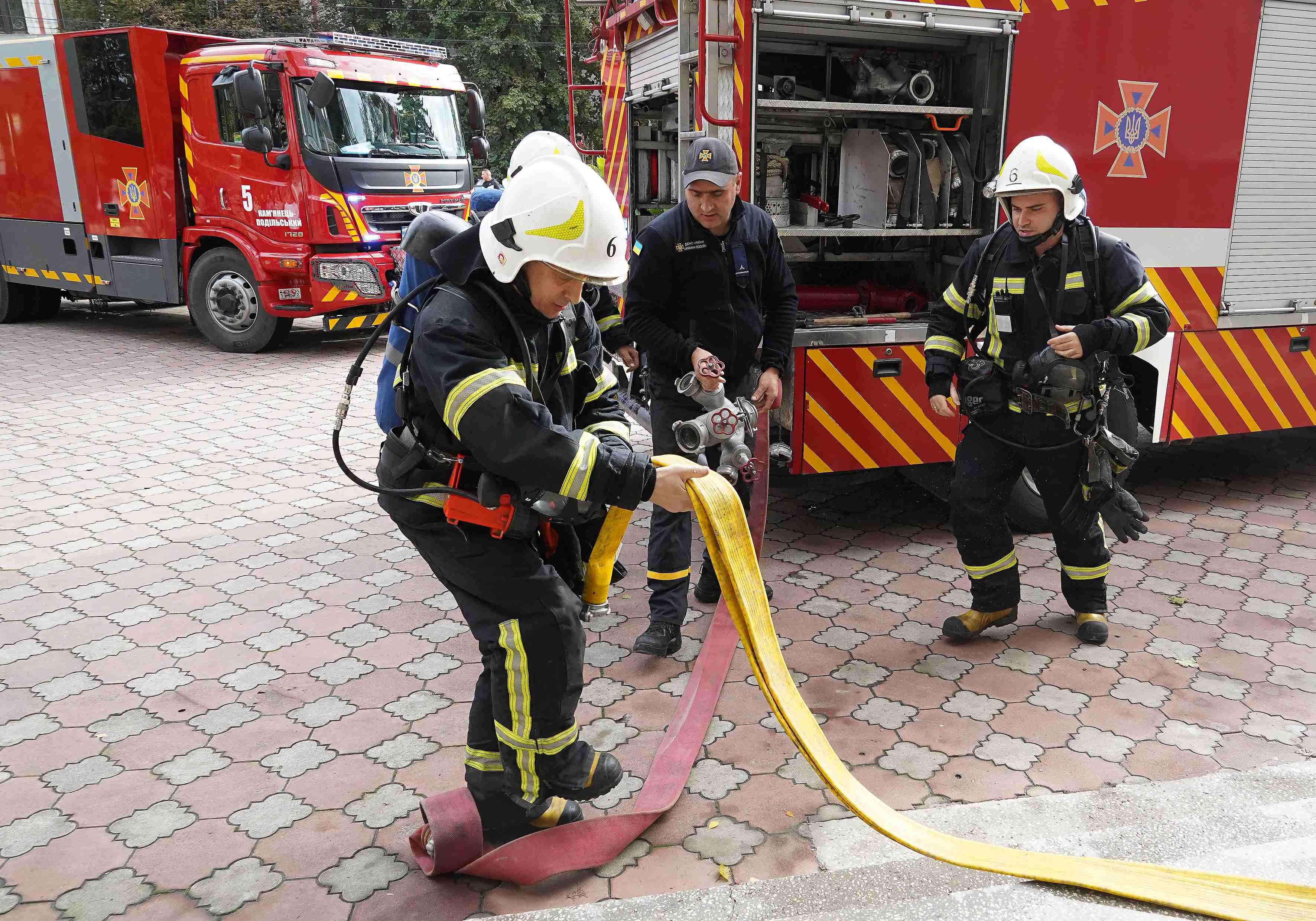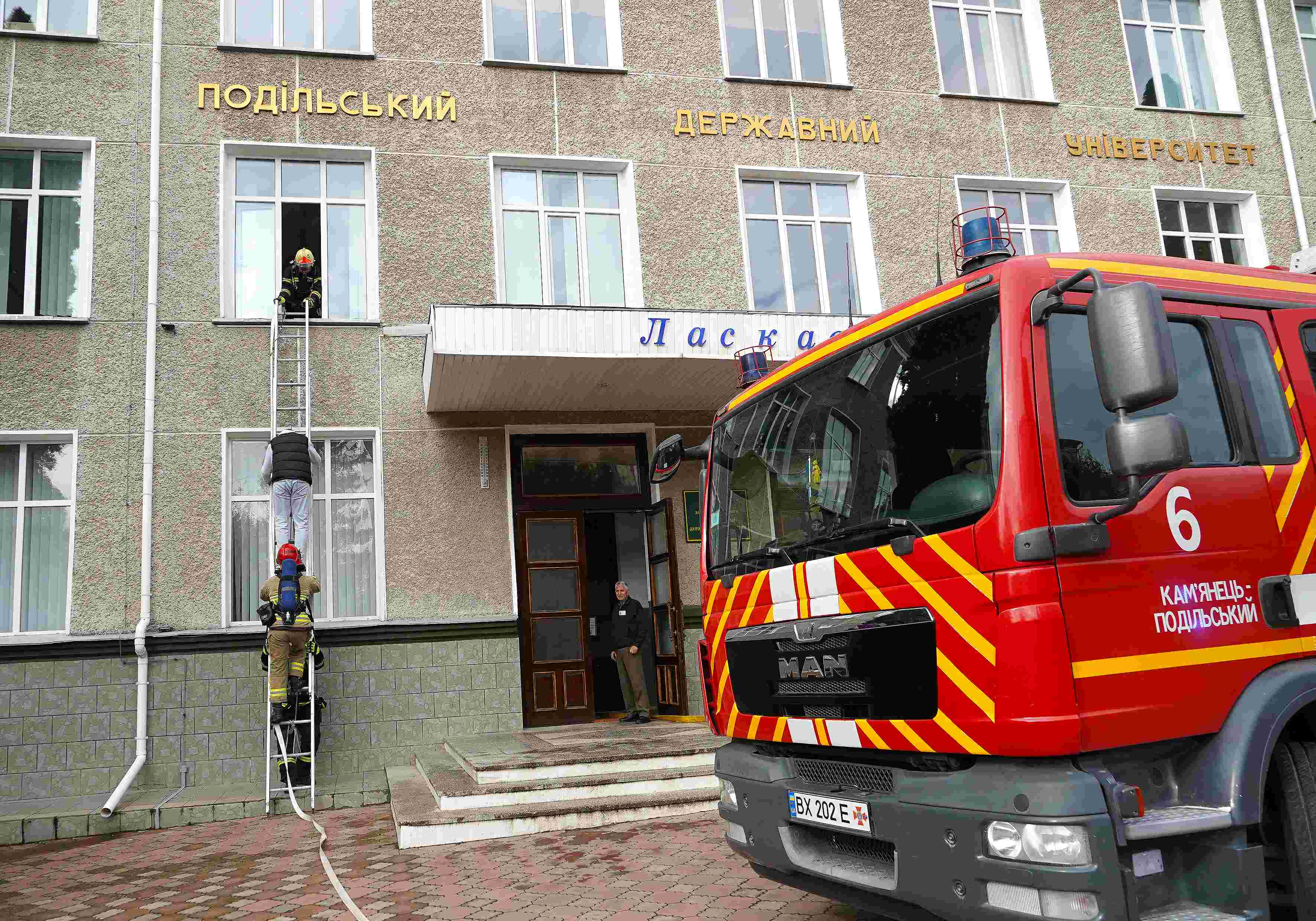 Тренування розпочалось з оголошення умовної «Повітряної тривоги» в актовому залі університету, де всім учасникам освітнього процесу було оголошено, що в результаті умовної ракетної атаки відбулось руйнування частини головного корпусу та загоряння музею хліба на другому поверсі. Всі присутні швидко й без метушні покинули приміщення, але за сценарієм в 38 аудиторії залишилися заблокованими 5 студентів, яким була необхідна допомога. Спрацювала автоматична пожежна сигналізація і пожежо-рятувальні екіпажі 6 ПРЧ під керівництвом майора служби НС Олега ГУЛИ негайно прибули для гасіння пожежі і надання допомоги потерпілим. Із відчиненого вікна 38 аудиторії на другому поверсі виривались язики полум’я і валив дим. Відрізані від виходу потерпілі благали про допомогу. Бійці 6 ДПРЧ у повному спорядженні вправно розгорнули засоби пожежогасіння та евакуації. Промайнуло декілька хвилин і осередок пожежі був ліквідований, а заблоковані студенти були звільнені і доставлені до лікарів бригади швидкої медичної допомоги де їм була надана кваліфікована медична допомога. Всі присутні могли ознайомитись з правилами виконання штучного дихання, зупинки кровотечі, накладання турнікетів під час надання первинної медичної допомоги.