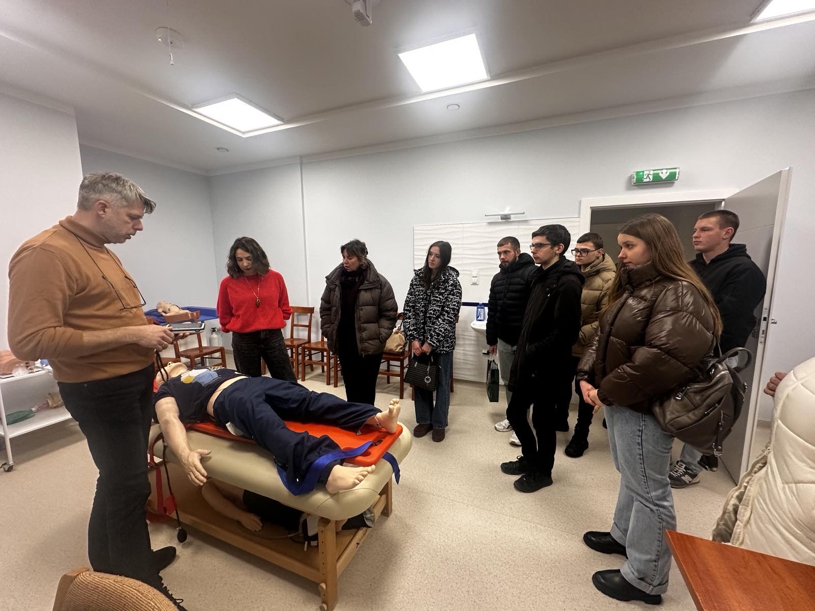 Під час відвідування Інституту медичних наук здобувачі ознайомилися з лабораторіями морфології, клінічної діагностики та симуляційними центрами, які використовуються для підготовки майбутніх медичних фахівців. Студенти мали змогу побачити роботу обладнання для мікроскопії, аналізу біоматеріалів, а також симуляційних манекенів і тренажерів, що дозволяють відпрацьовувати практичні навички й моделювати реальні клінічні ситуації.
