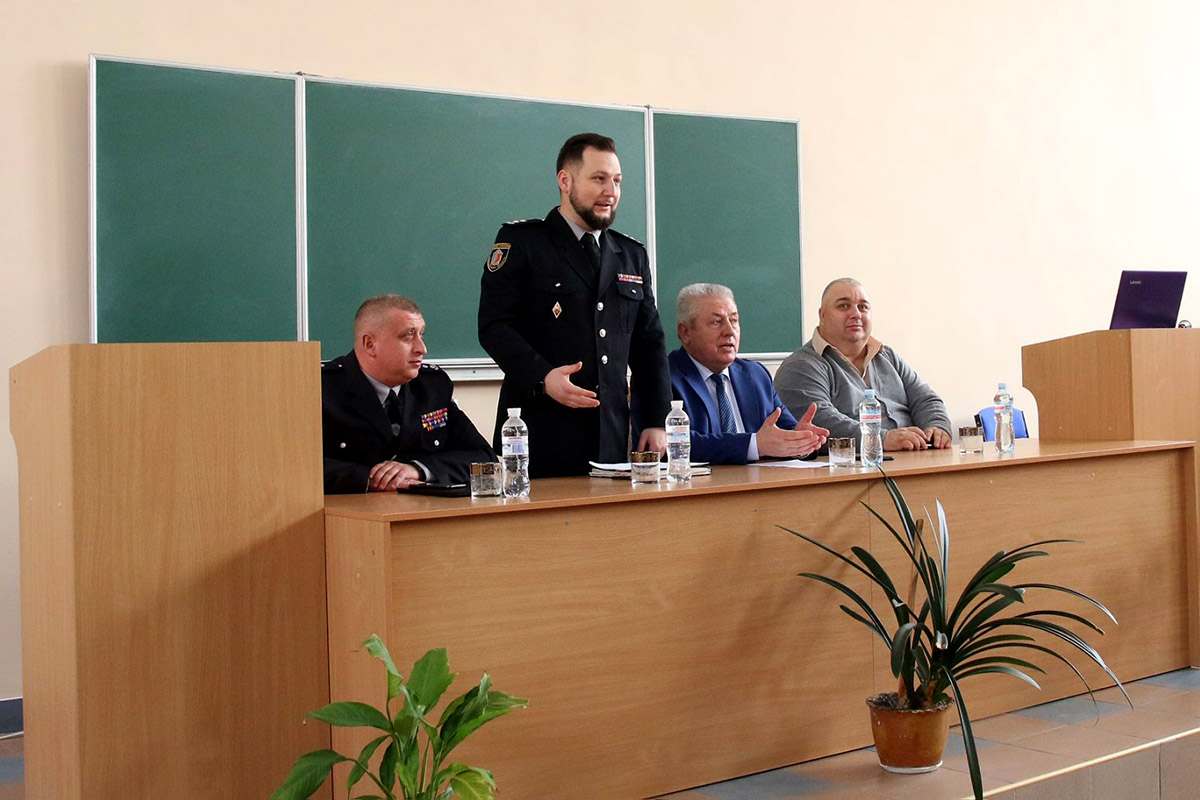 До вітального слова долучився і заступник начальника Головного управління Національної поліції в Хмельницькій області-начальник кримінальної поліції, полковник поліції Чайковський Андрій Едуардович, який привітав учасників зборів і побажав взяти від отриманих тут знань як найбільше.