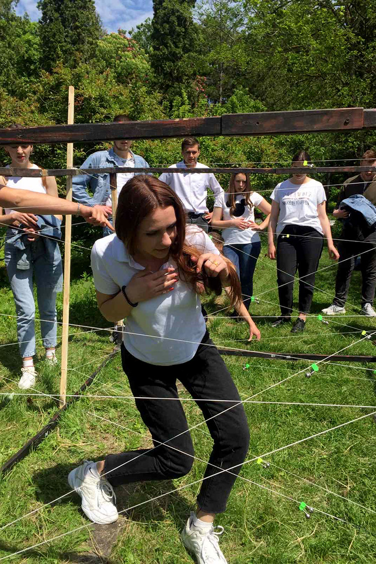 Учасники мали подолати п'ять командних конкурсів кожен з яких мав свої критерії оцінювання. На точці «Спритна Башта» враховувалась кількість перемог над статистом (Володимир Соколов), в «Німоті» (гра «Показуха», або «Крокодил») Марія Мазуренок відзначала кількість відгаданих слів, на «Водоносі» команди за відведений час мали наповнити резервуар, щоб сплив поплавець (статист Олена Підперигора). У конкурсі «Павутина» бали нараховувались обернено пропорційно. Кількість дзвіночків, що задзвеніли мали бути якомога менше, відтак, команда що зачепила найменше дзвіночків отримала 5 балів. А у «Лучному тирі», команди збивали надувні кульки, кожна з яких зараховувалась як бал. У кінці усі бали підсумовували і визначали бал загального заліку.