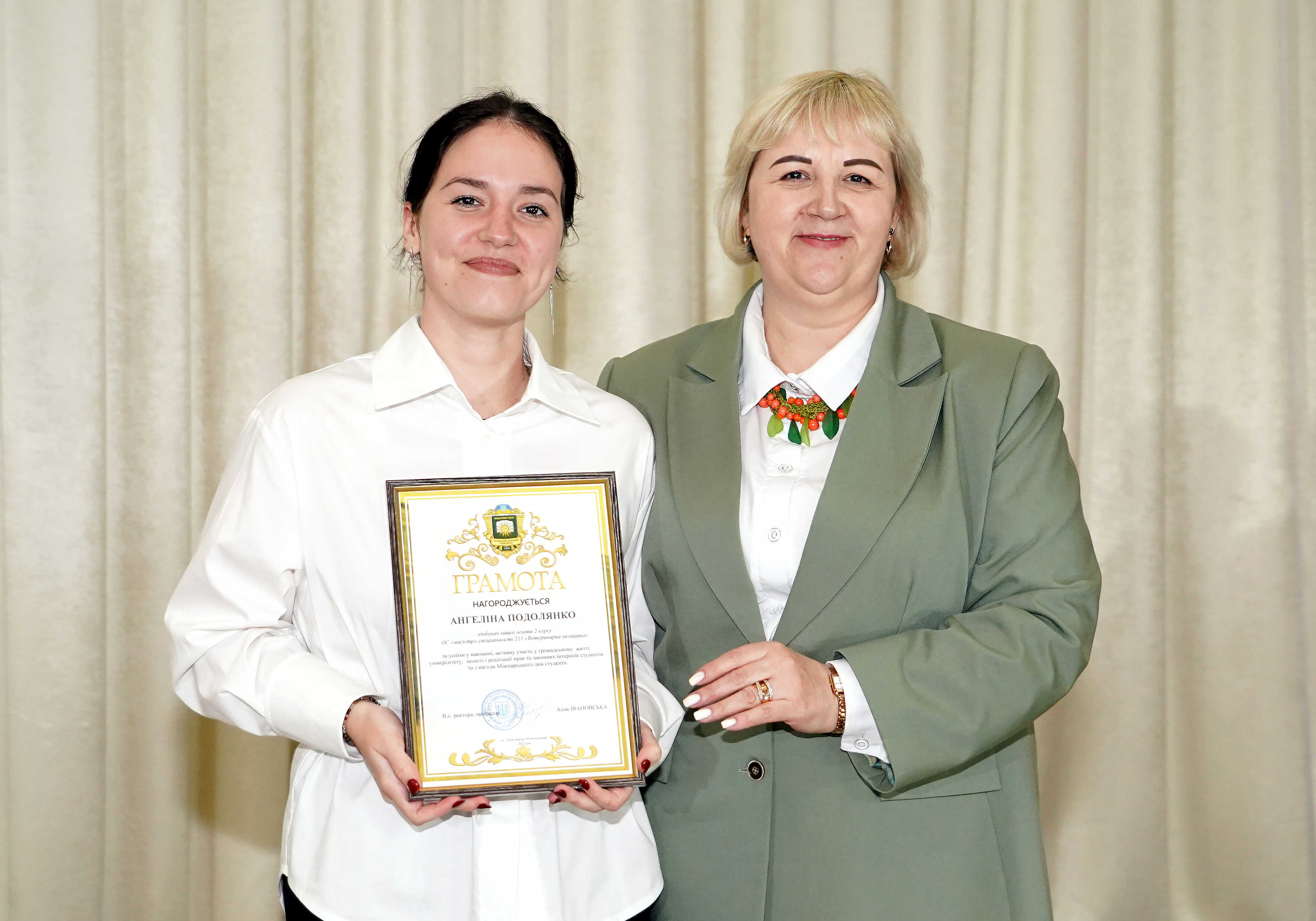 З теплими словами до присутніх звернулася також голова первинної профспілкової організації співробітників і студентів ЗВО «ПДУ» Світлана ЛІЩУК. Вона привітала колектив зі святом і нагородила працівників та студентів, які активно беруть участь у розвитку університетської спільноти.