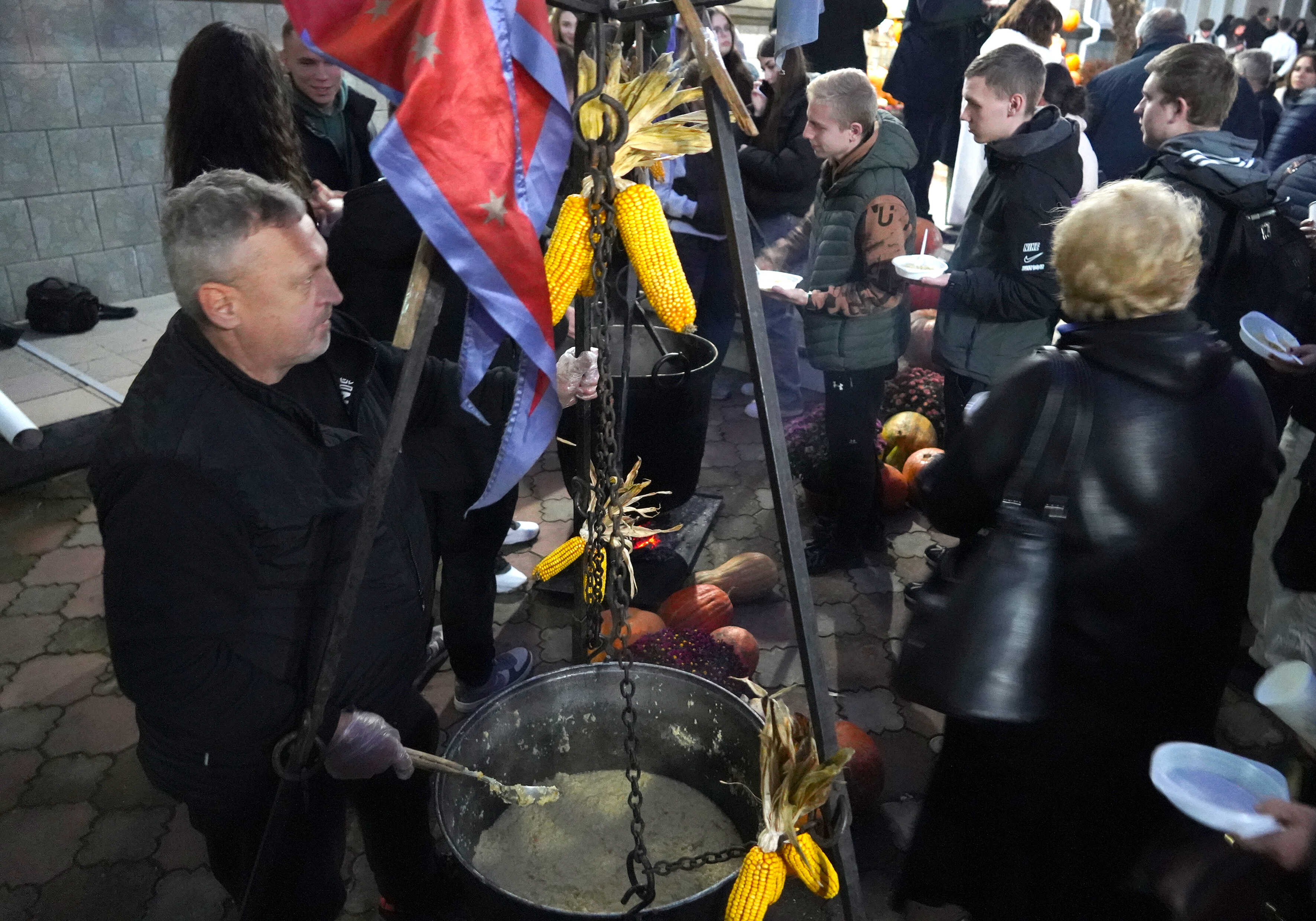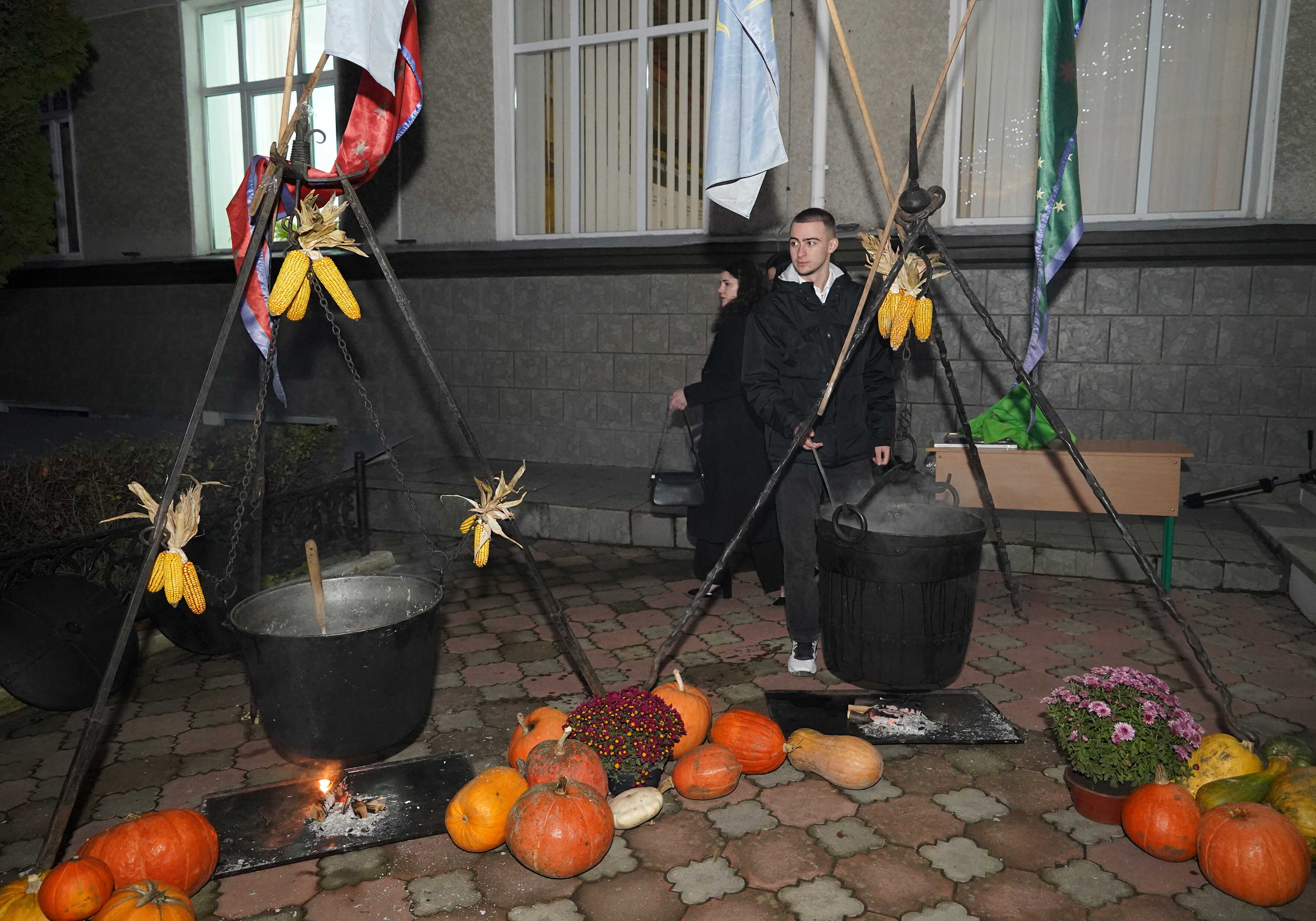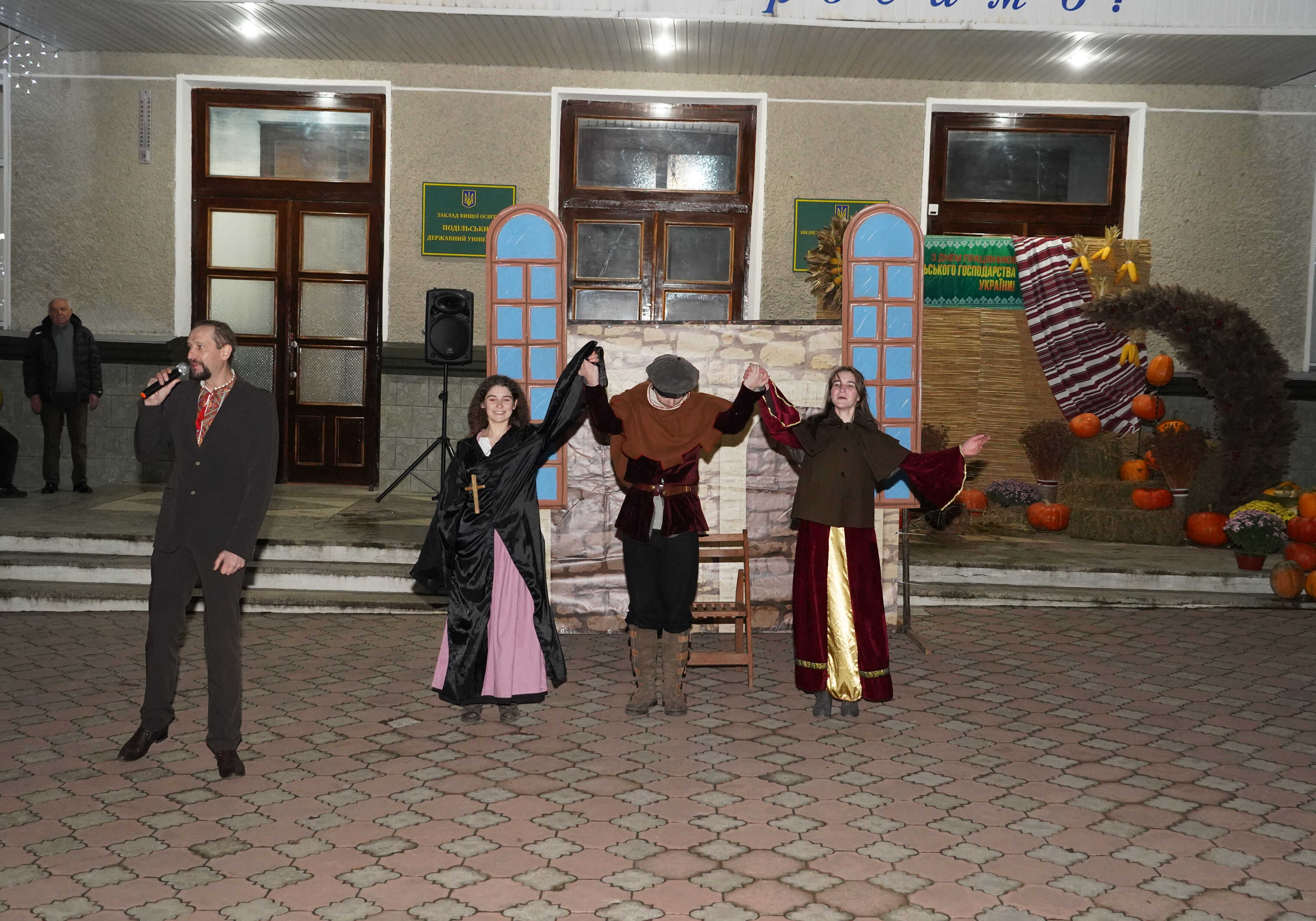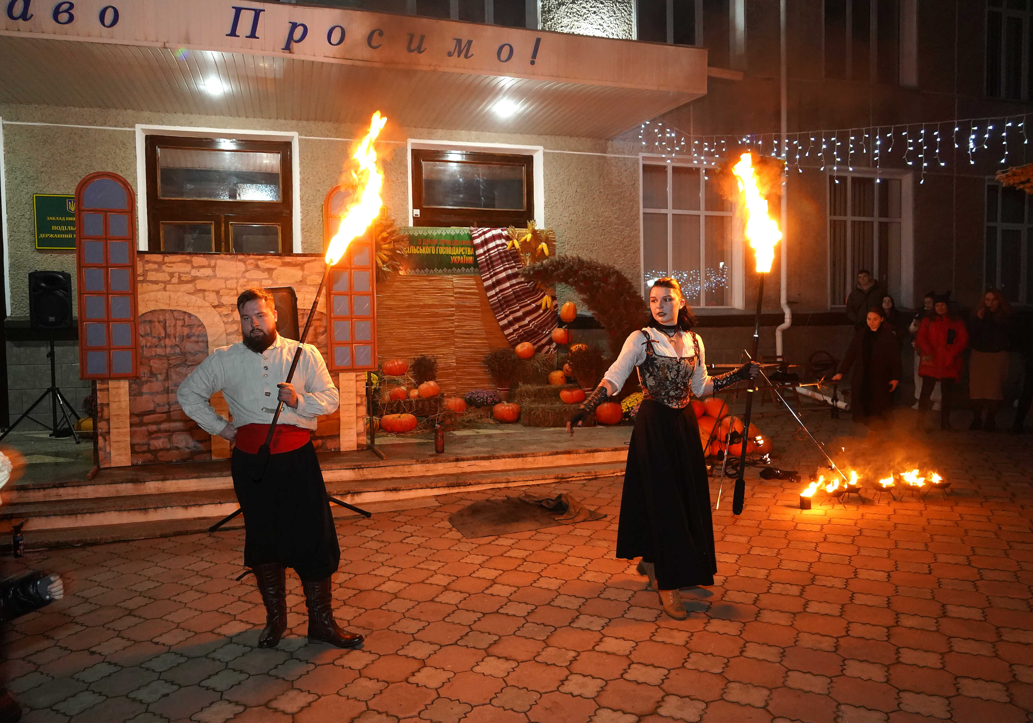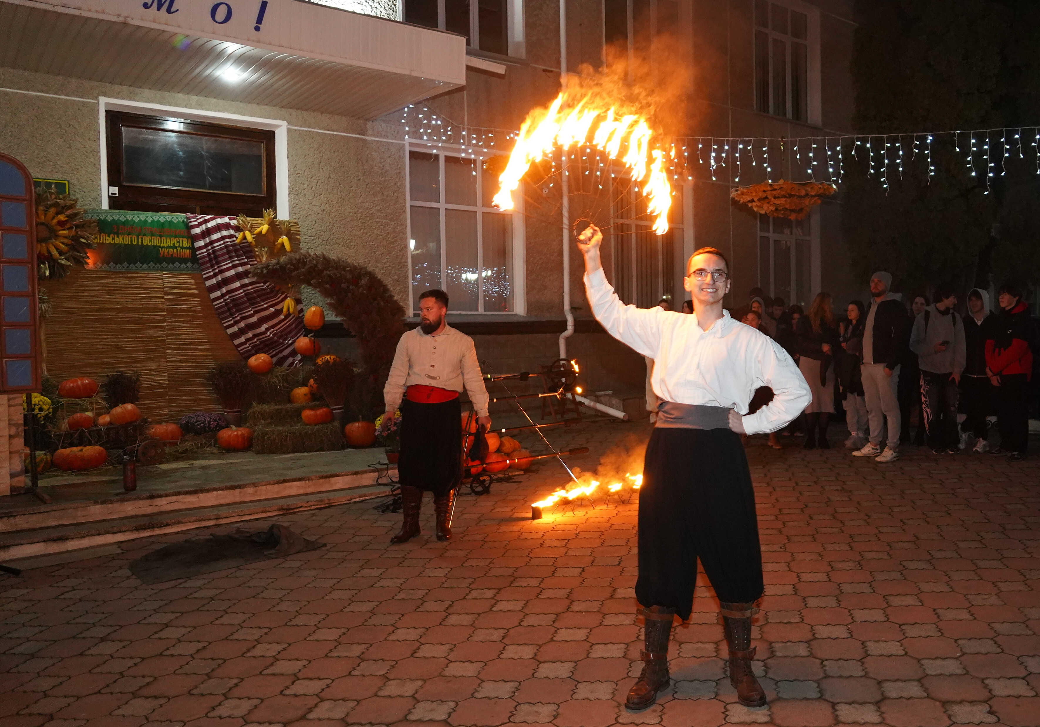 Святкування продовжилося просто неба на площі перед головним корпусом, де панувала справжня святкова атмосфера. Тут усі охочі могли відвідати яскраві фотозони, насолодитися виступом вуличного театру, скуштувати козацький куліш і традиційний узвар, гостинно приготовані підприємцем Олегом ВОЩИНСЬКИМ, власником кав’ярні «Кава від поліцмейстера». Його доброзичлива гостинність і смачна продукція стали ще одним символом тепла і родинного настрою свята. Завершальним акордом стало ефектне фаєр-шоу, яке подарувало гостям незабутні емоції.