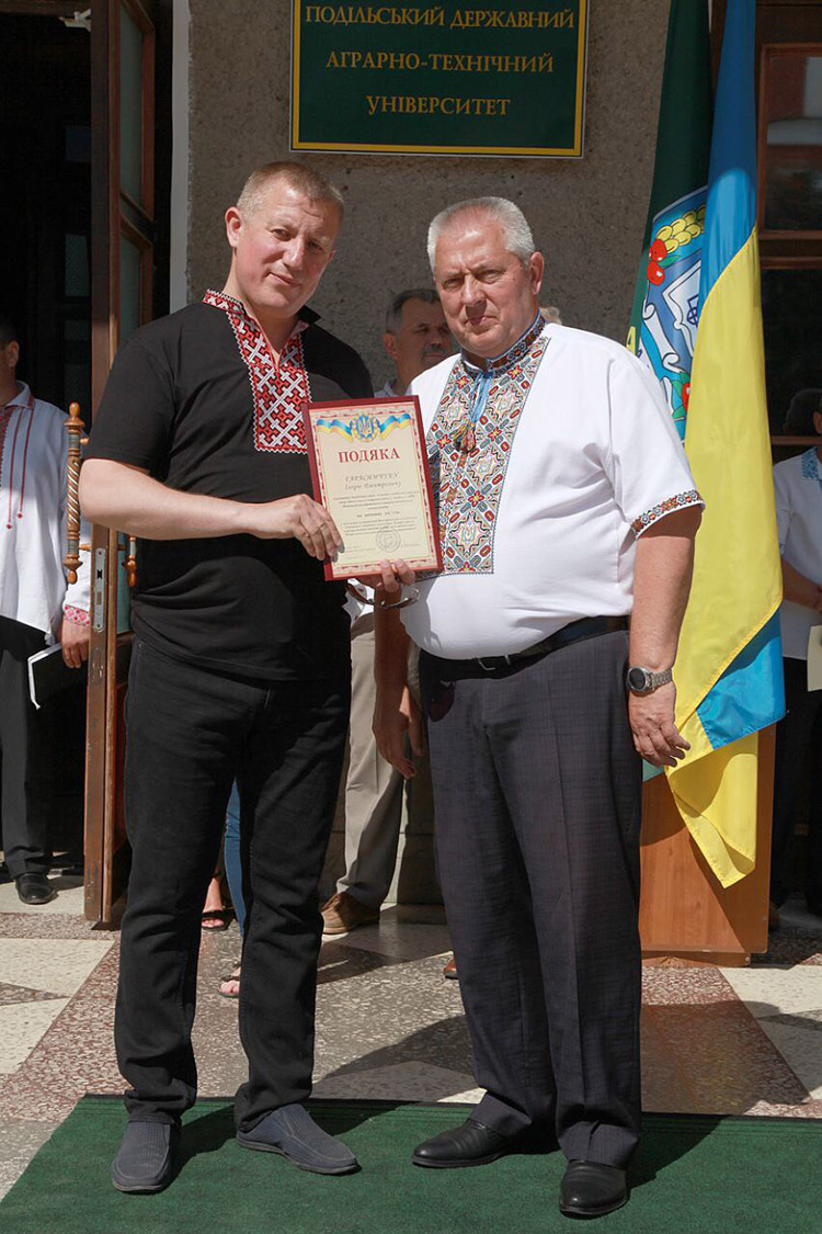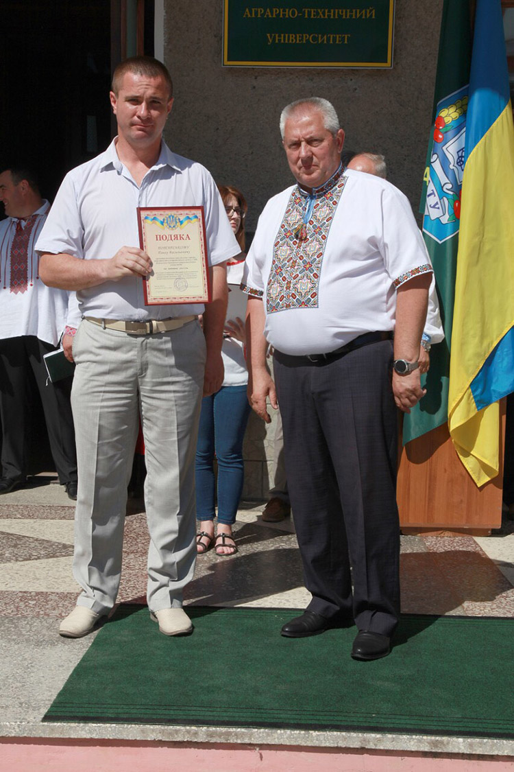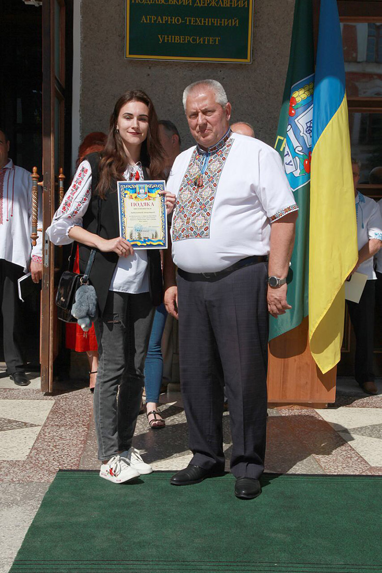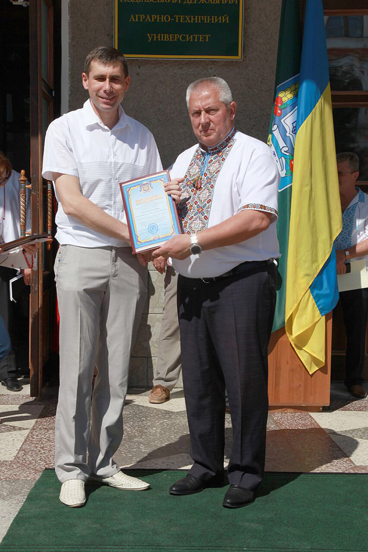 Усіх привітали зі святом і Почесні гості: заступник голови районної ради – Віктор Єрменчук, вручивши науково-педагогічним працівникам (В. Левицькій, Ю. Павельчуку, Т. Приліпко) грамоти до Дня науки; генеральний директор ТОВ «Український кристал» - Володимир Юр'єв та у знак достатку та процвітання навчального закладу передав ректору університету запашний коровай; начальник відділу агропромислового розвитку Кам'янець-Подільської райдержадміністрації – Надія Сузанська.