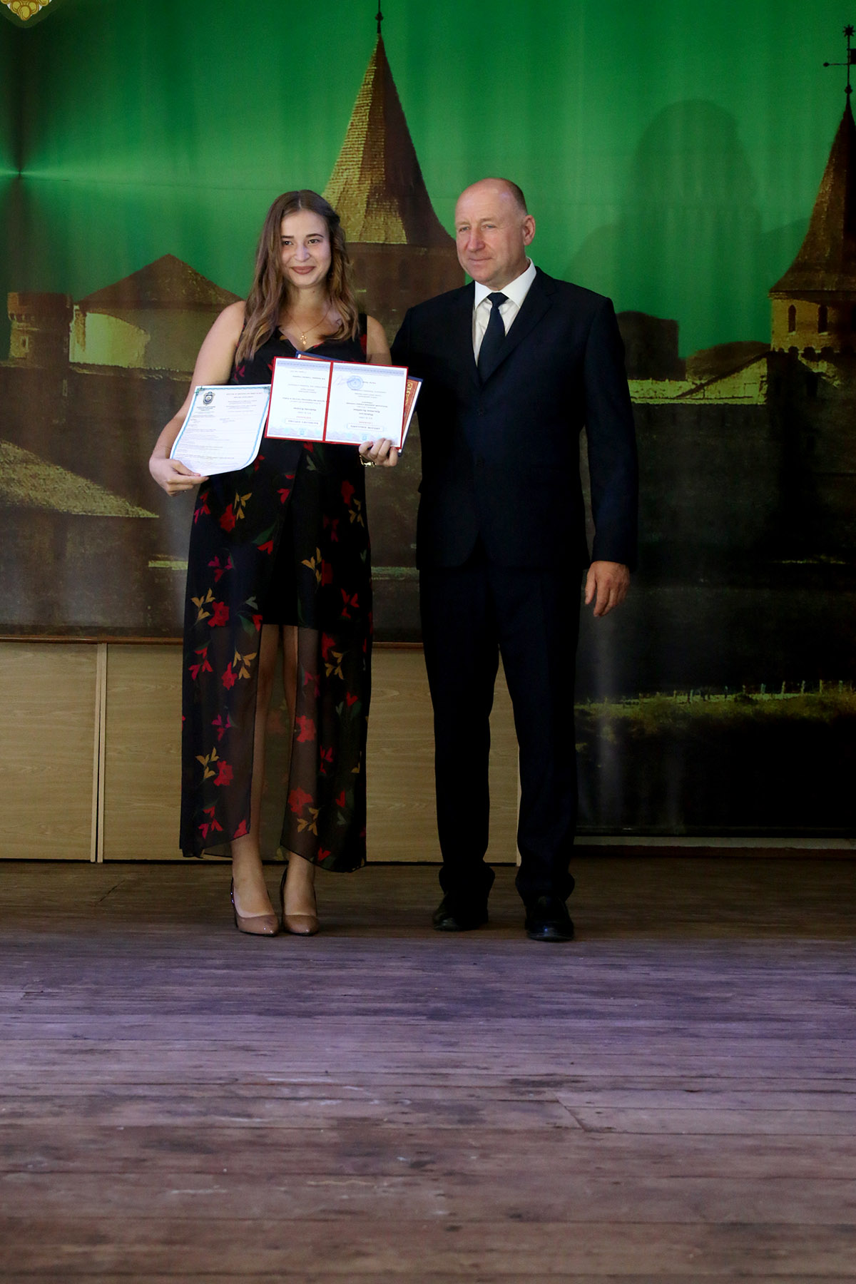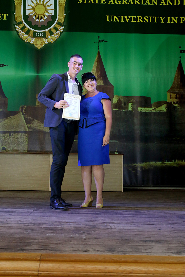 Під музичний супровід та гучні аплодисменти проректор, Василь Строяновський вручив студентам дипломи, також кращим випускникам за активну роботу та професіоналізм, за відмінне навчання та здобутки вручено грамоти від ректора та профкому університету: Лужняк В.С., Тарабузан О.В., Іваськів Н.О., Майківській К.В., Горенко М.А., Рибак Б.В., Іванову В.С., Зельській В.В., Бігун С.М., Балагур А.І., Костюк О.А., Панчук О.Ю., Співак Я.І., Гадай А.І., Качинській І.В., Шимковій Ю.В. та Бугері А.І.