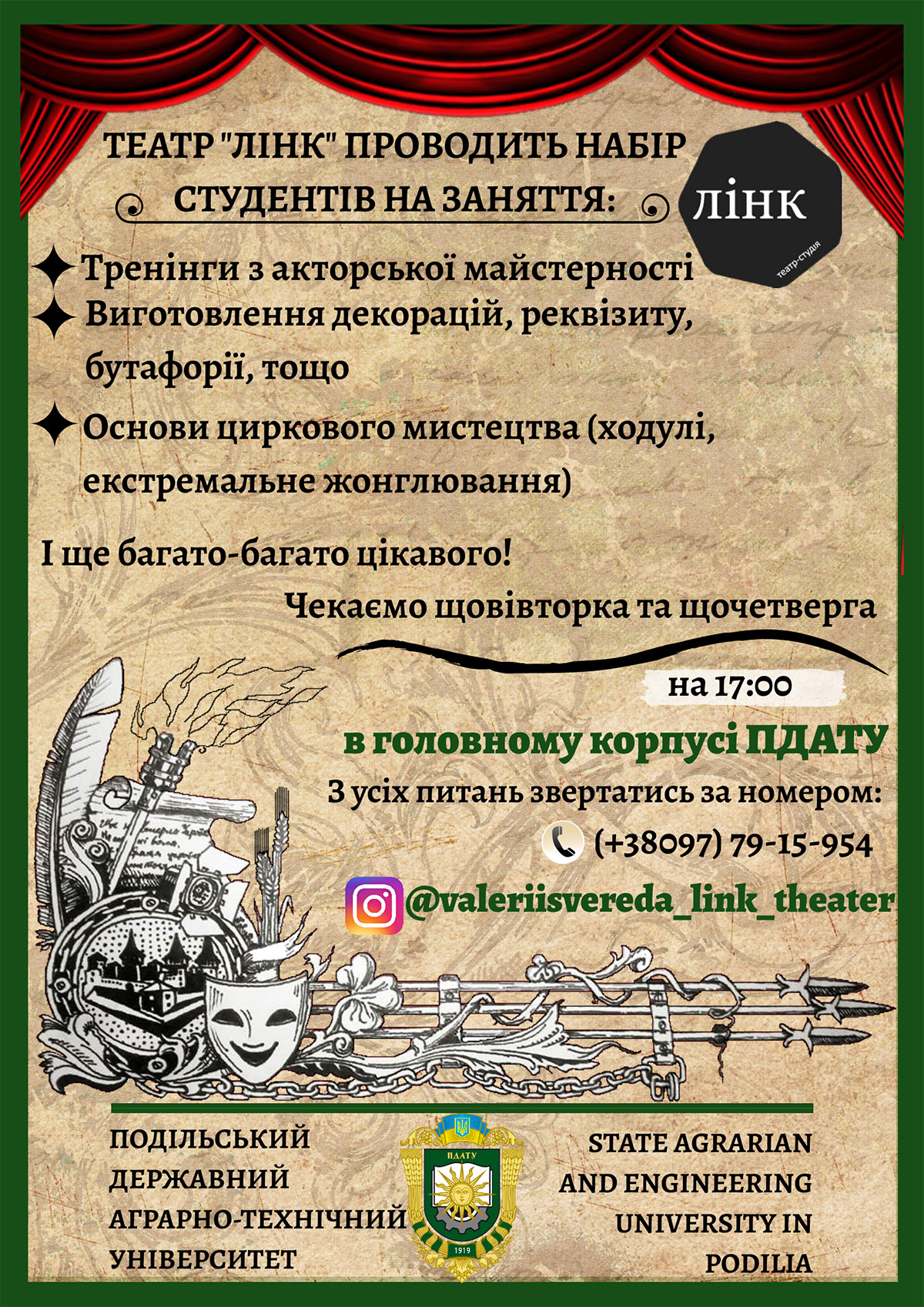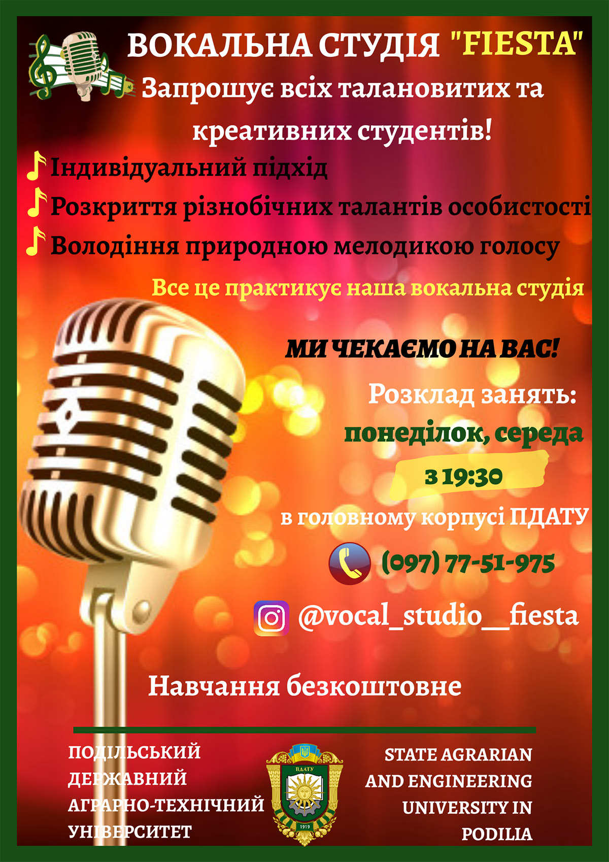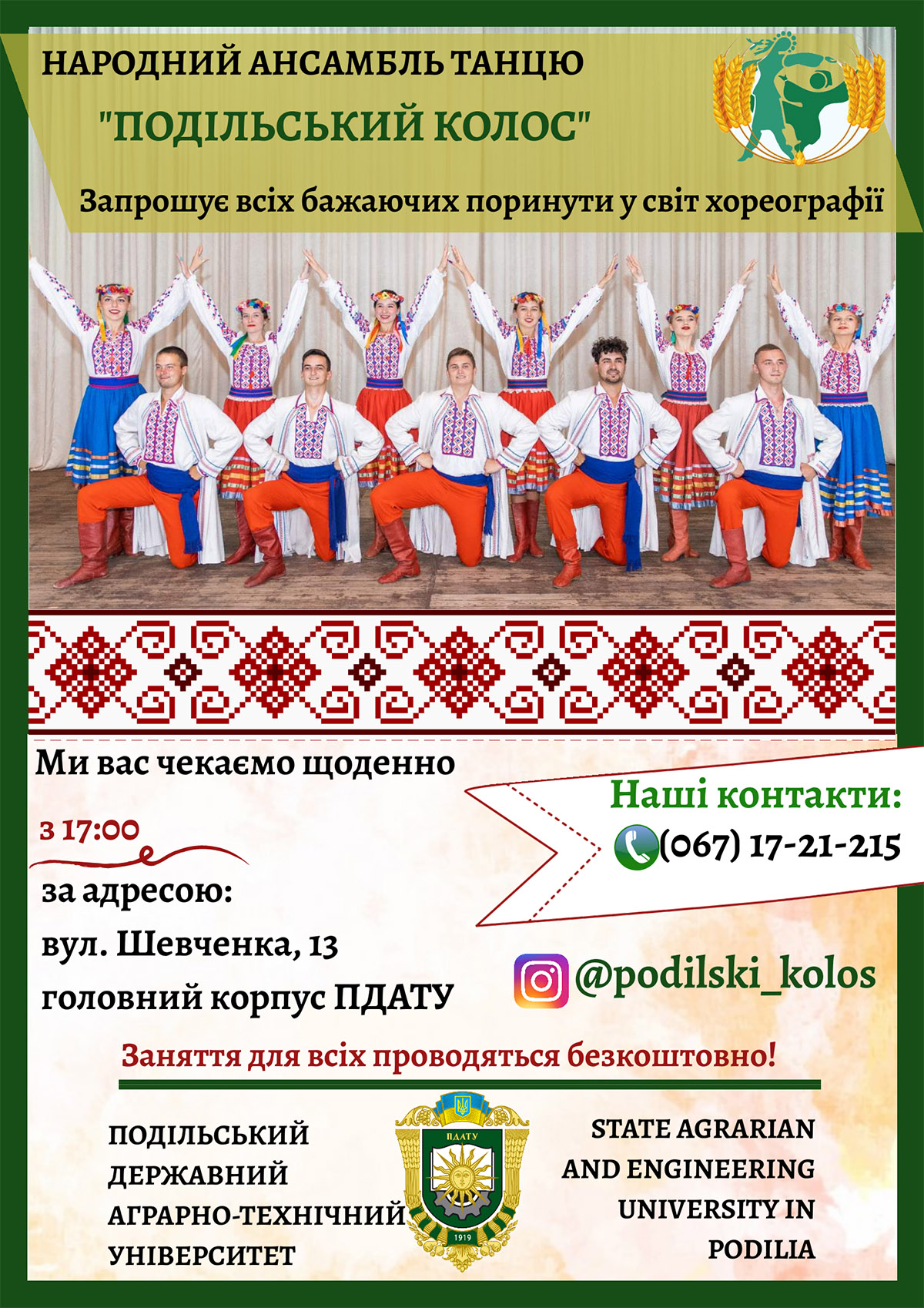 З метою набуття соціального досвіду, успадкування духовних надбань українського народу, формування всебічно розвиненої особистості, для реалізації Вашого творчого потенціалу, розвитку нахилів і здібностей, запрошуємо до творчих об'єднань ПДАТУ: