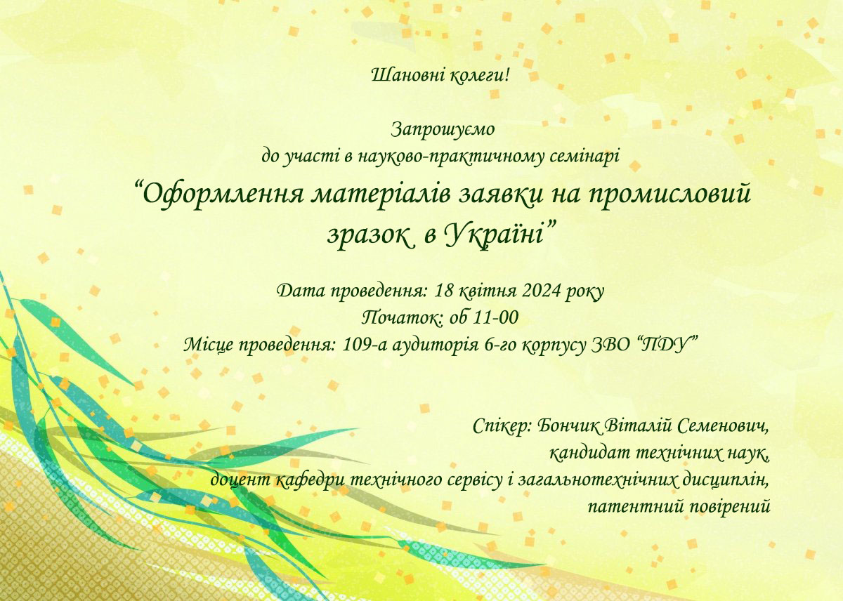 “Оформлення матеріалів заявки на промисловий зразок в Україні”