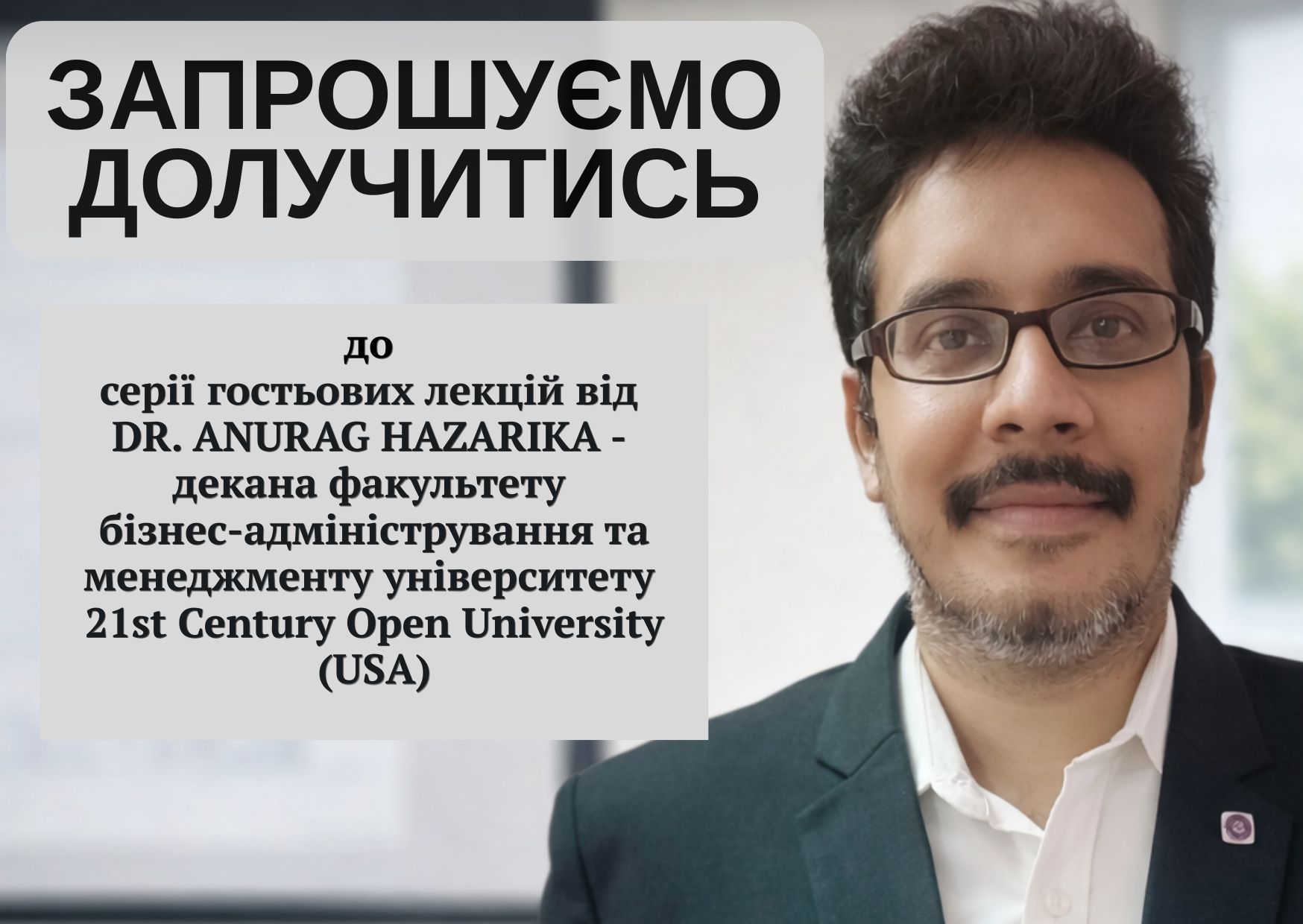 запрошуємо Вас долучитися до серії гостьових лекцій від Dr. Anurag Hazarika, декана факультету бізнес-адміністрування та менеджменту університету 21st Century Open University (USA).