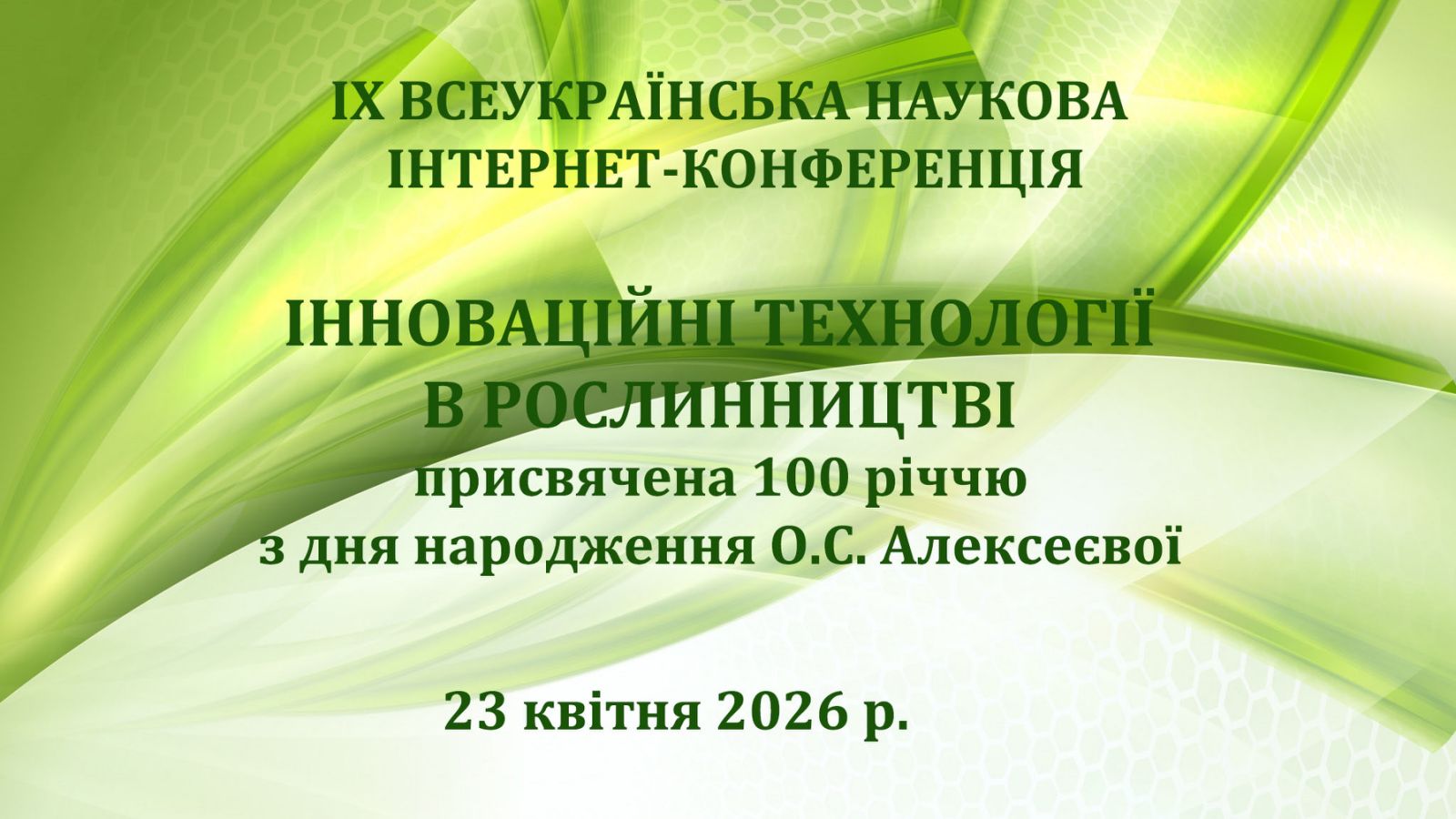 Запрошуємо Вас взяти участь у IX Всеукраїнській науковій інтернет-конференції «Інноваційні технології в рослинництві» присвяченій 100-річчю з дня народження О.С. Алексеєвої, яка проводитиметься 23 квітня 2026 року у Закладі вищої освіти «Подільський державний університет».