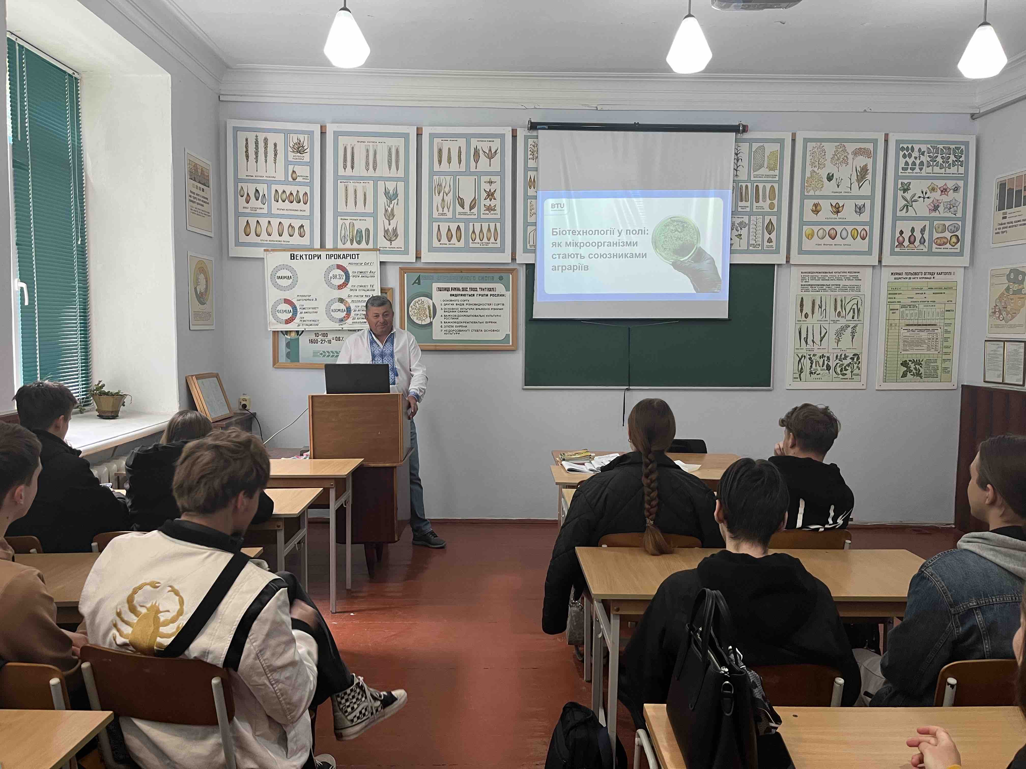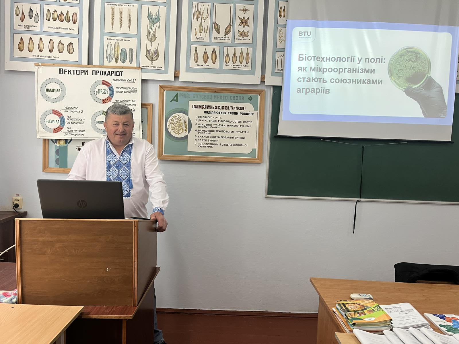 15 травня 2025 року на кафедрі рослинництва, селекції та насінництва факультету агротехнологій і природокористування ЗВО «ПДУ» на запрошення професора Олександра ГОРАША проведено гостьову лекцію головним агрономом, керівником відділу агробізнесу компанії BTU Олександром РОСТОЦЬКИМ для здобувачів першого (бакалаврського) рівня вищої освіти за спеціальністю 201 «Агрономія» на тему: «Біотехнології в полі: як мікроорганізми стають союзниками аграріїв».
