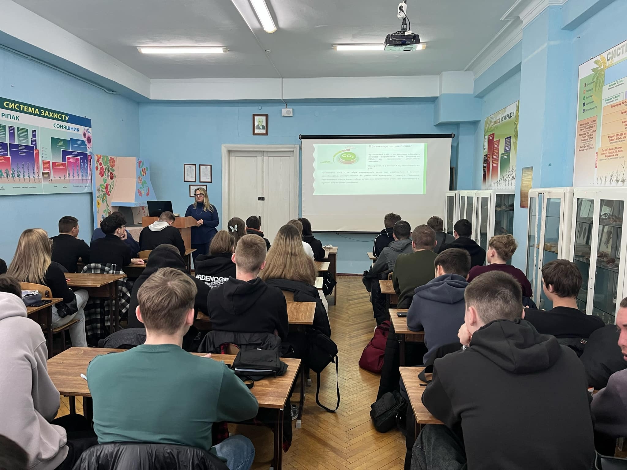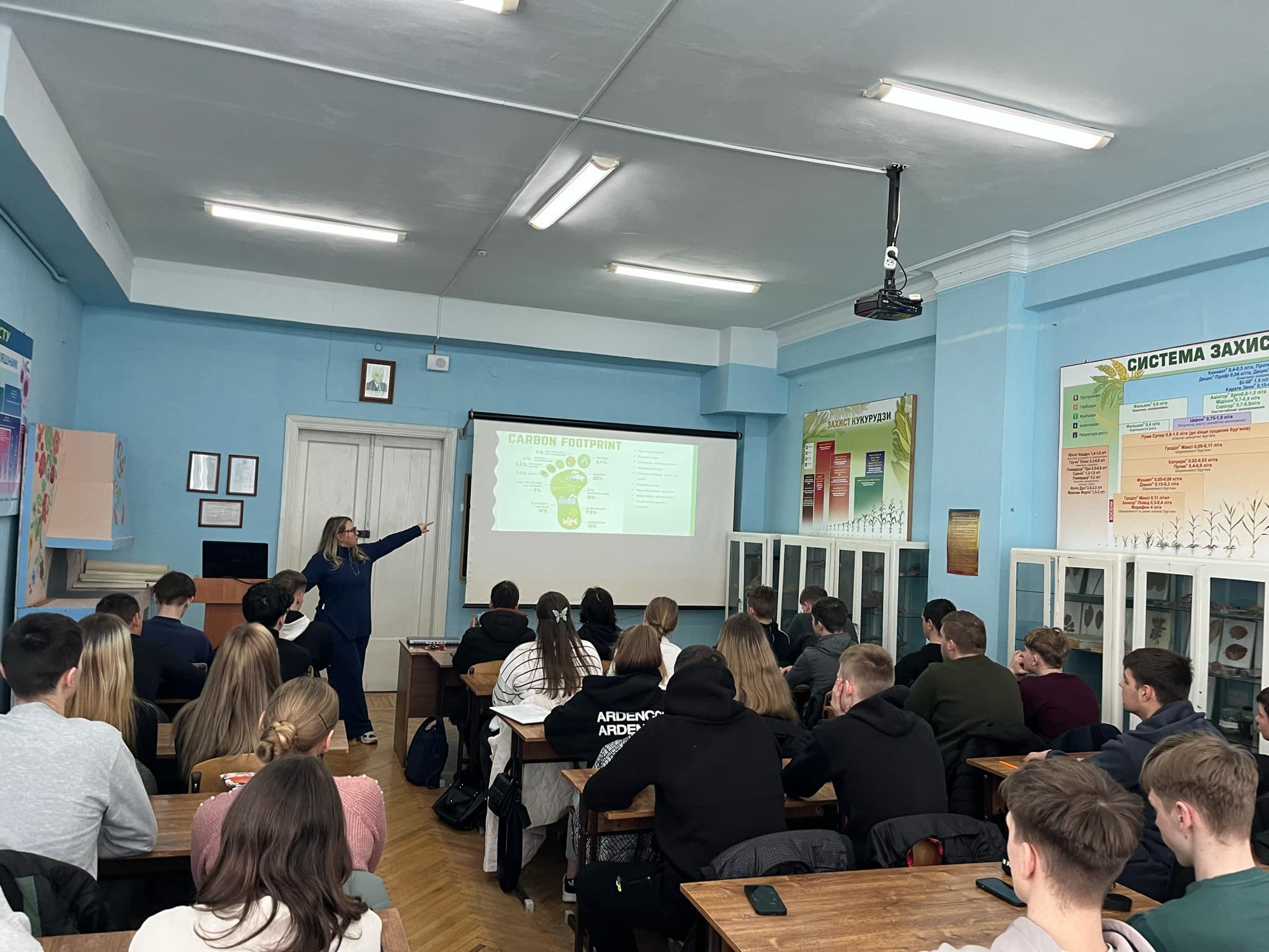 Науково-педагогічними працівниками кафедри рослинництва, селекції та насінництва була ініційована гостьова лекція з випускницею нашого закладу, екологом, кандидатом сільськогосподарських наук, ГО «Eco-hub_KP» Тютюнник Оксаною. Зустріч була організована для здобувачів вищої освіти спеціальності 201 «Агрономія», де обговорили важливу тему — вуглецевий слід. Під час лекції розглянули, що вуглецевий слід — це кількість викидів парникових газів, зокрема діоксиду вуглецю (CO2), що утворюються внаслідок діяльності людини або виробництва товарів і послуг. Цей термін використовують для оцінки впливу різних процесів на зміну клімату. Вуглецевий слід можна виміряти не тільки для великих підприємств чи країн, а й для окремих осіб. Визначили роль рослин та океанів у затримці карбону. У нашому повсякденному житті вуглецевий слід формується через енергоспоживання, транспорт, споживання їжі, використання товарів, а також через способи утилізації відходів. Наприклад, поїздки на автомобілі, енергоспоживання в домогосподарствах або виробництво та споживання продуктів харчування, сільськогосподарської діяльності — все це впливає на загальний вуглецевий слід. Студенти активно долучалися до обговорення та ділилися своїми ідеями щодо сталого розвитку та еко-ініціатив. Разом ми зрозуміли, що кожен з нас може зробити свій внесок у збереження природи, починаючи з простих змін у повсякденному житті.