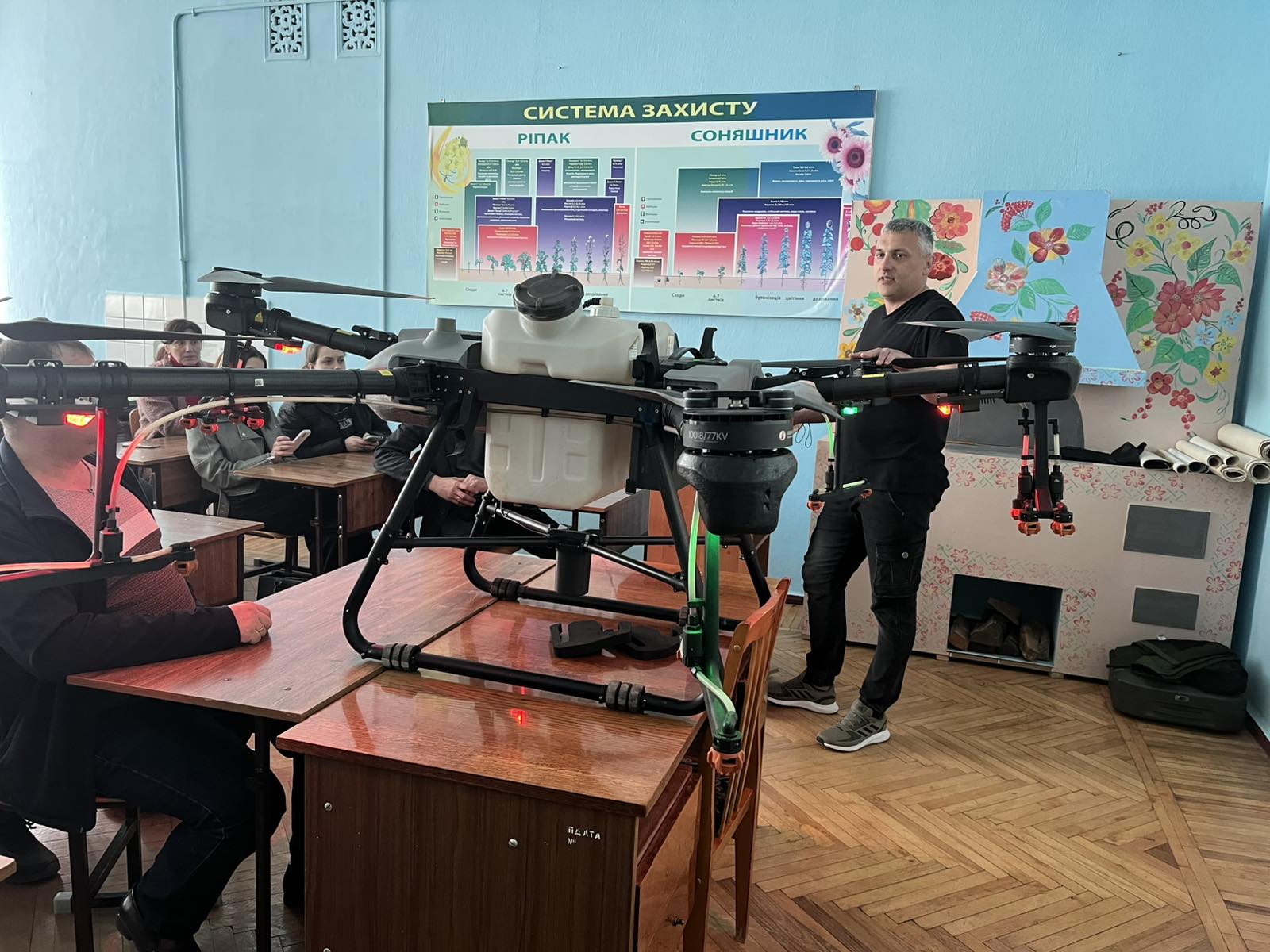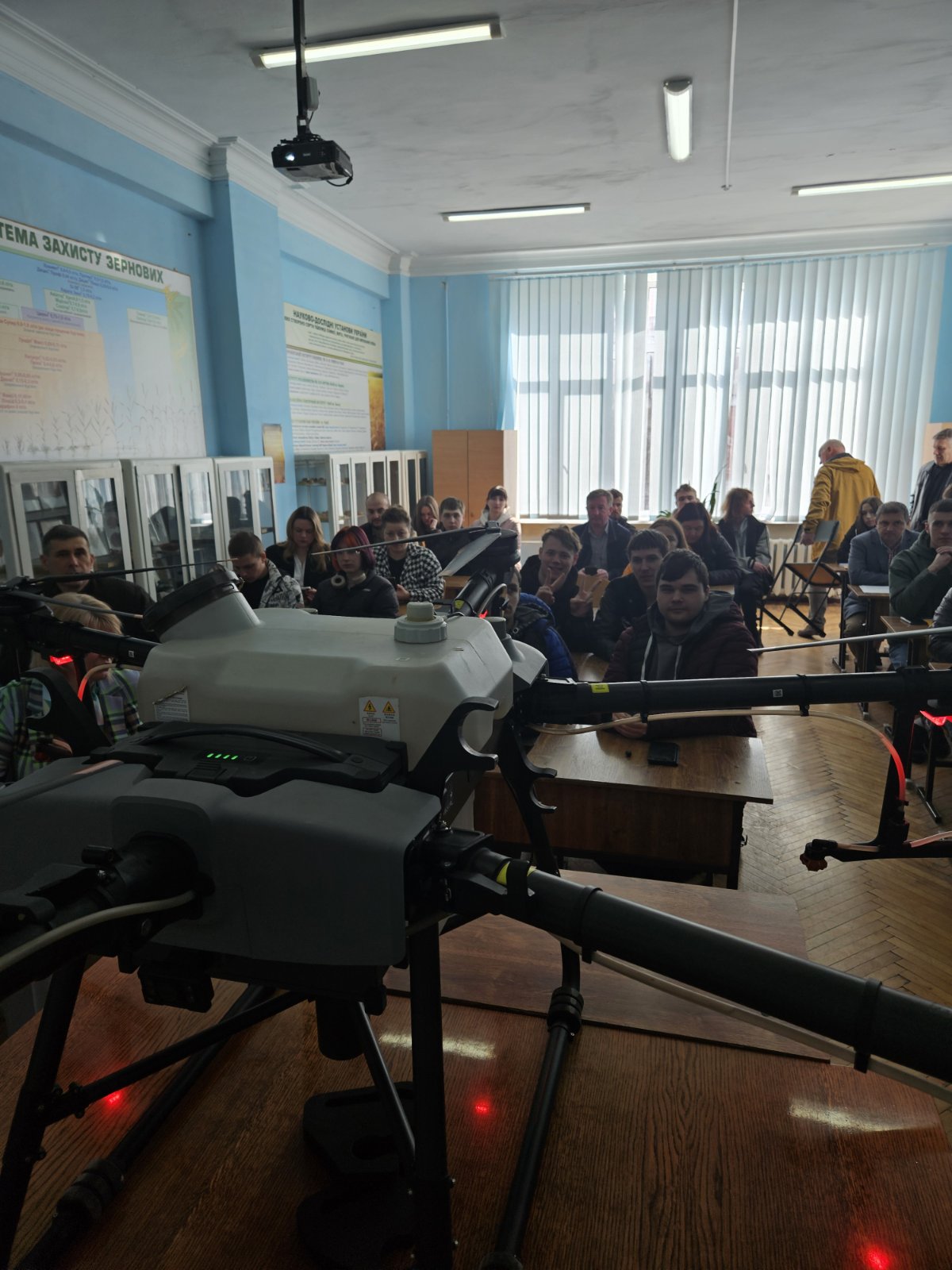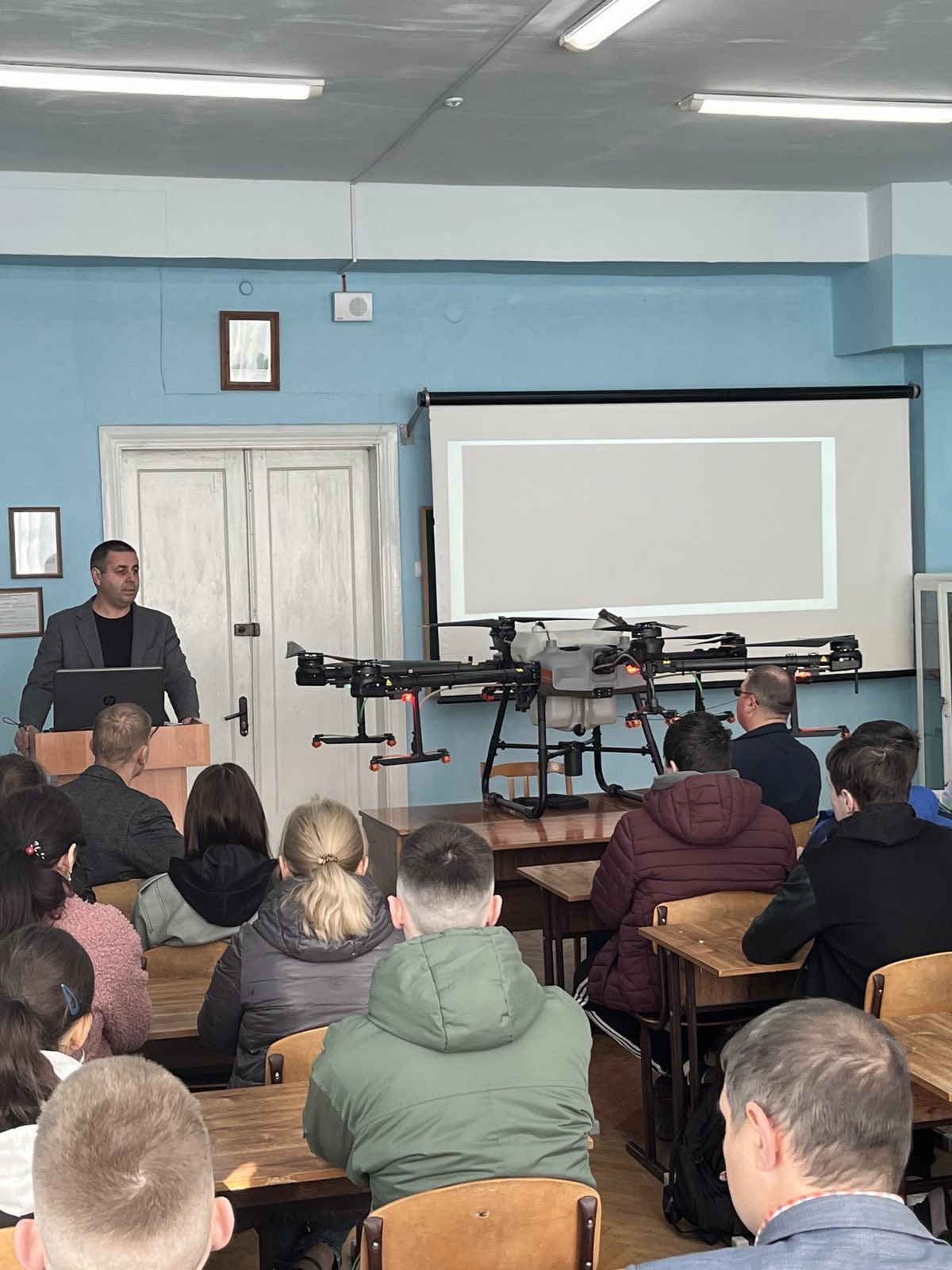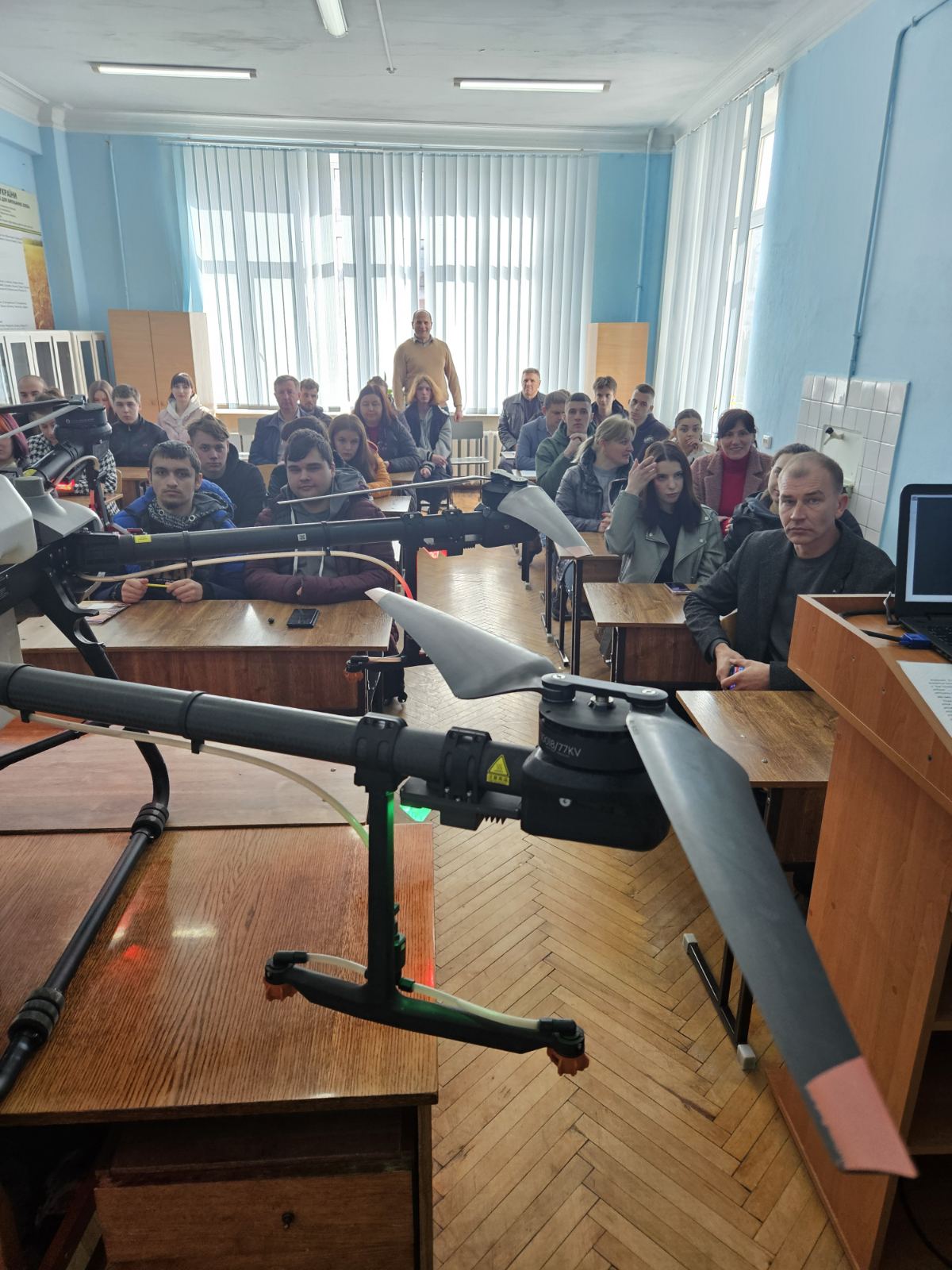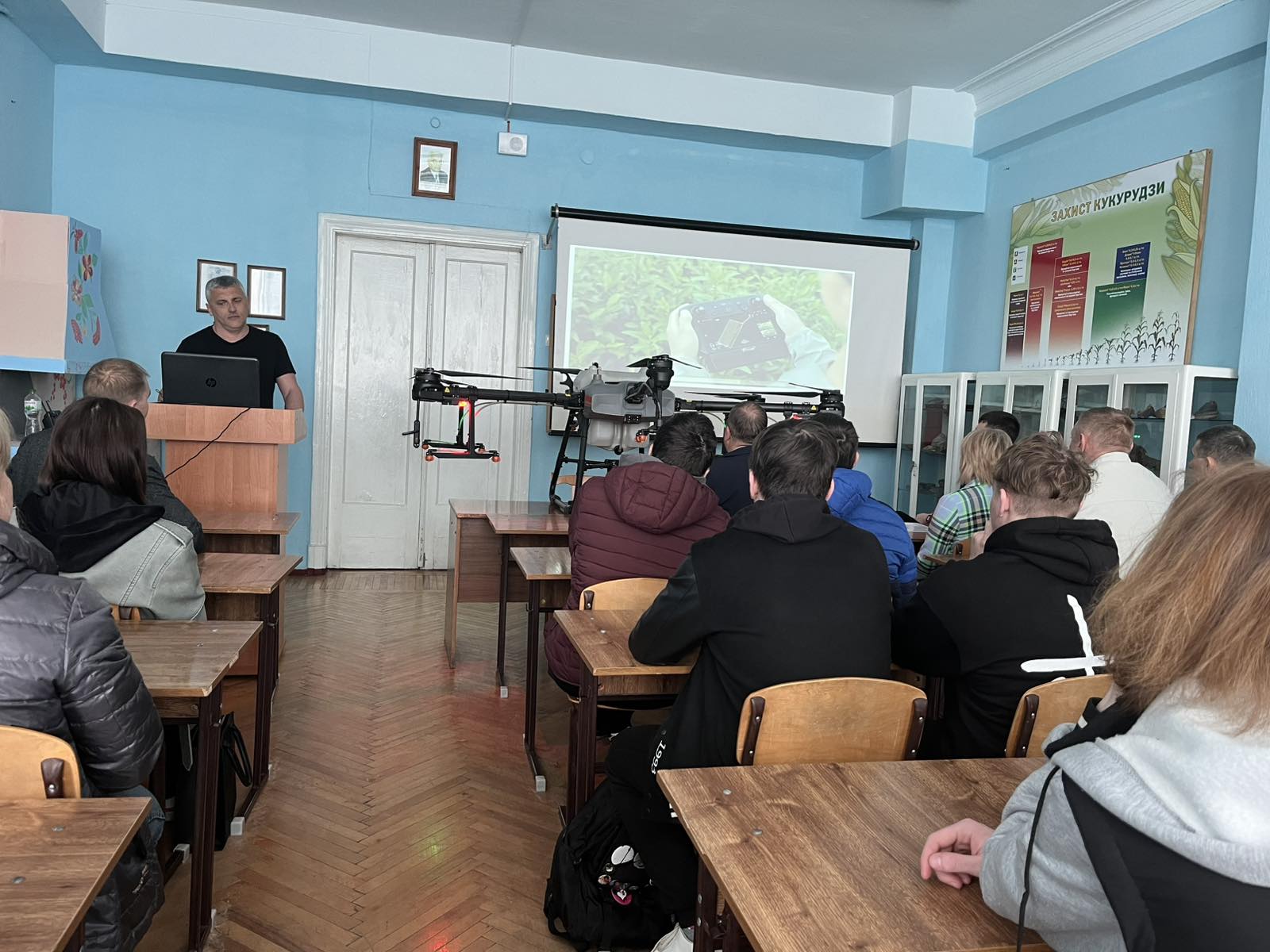 На факультеті агротехнологій і природокористування ЗВО «ПДУ» за сприяння директора Науково-дослідного інституту круп’яних культур ім. О. Алексеєвої Віталія БУРДИГИ відбулась гостьова лекція та майстер-клас з практичного використання дронів-обприскувачів для здобувачів вищої освіти, яку представив фахівець Василь ГРОХОЛІНСЬКИЙ. На думку доповідача дрони-обприскувачі є гарним доповненням самохідних обприскувачів в обробці полів та багаторічних насаджень, особливо в складних ґрунтово-кліматичних умовах. Агродрони сприяють впровадженню методів точного землеробства, підвищують операційну гнучкість й економічну ефективність агробізнесу. Василь Вікторович детально розповів про будову, потужність та технічні характеристики представленого безпілотника АГРО ДРОН DL Agras Т30. Жвавий інтерес здобувачів та присутніх на лекції викладачів змінили русло лекції, перевівши її у формат дискусії та ряду запитань, на які з високим професіоналізмом давав відповіді доповідач. Друга частина зустрічі була практичною. Здобувачам випала можливість отримати майстер-клас із управління дроном-обприскувачем. Здобувачі окреслили задачу для безпілотника і з цікавістю спостерігали за її виконанням.