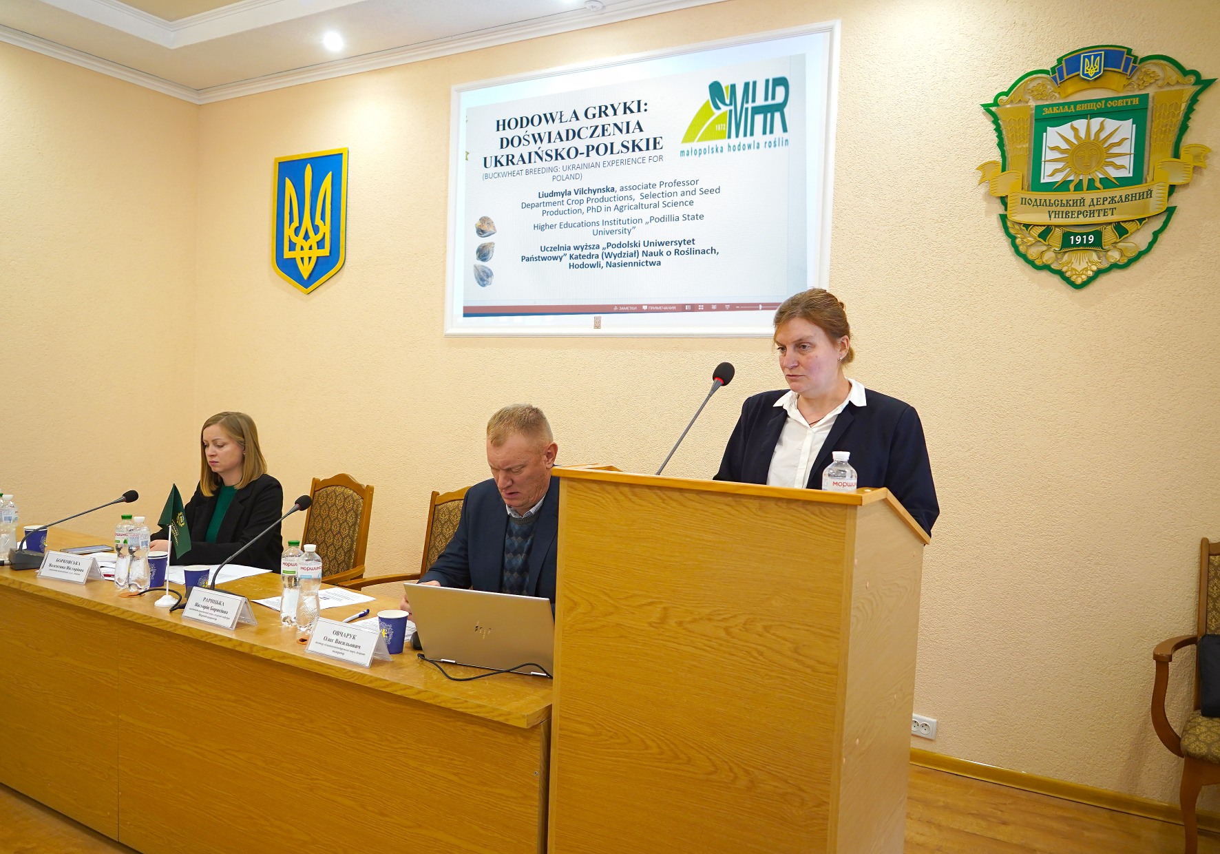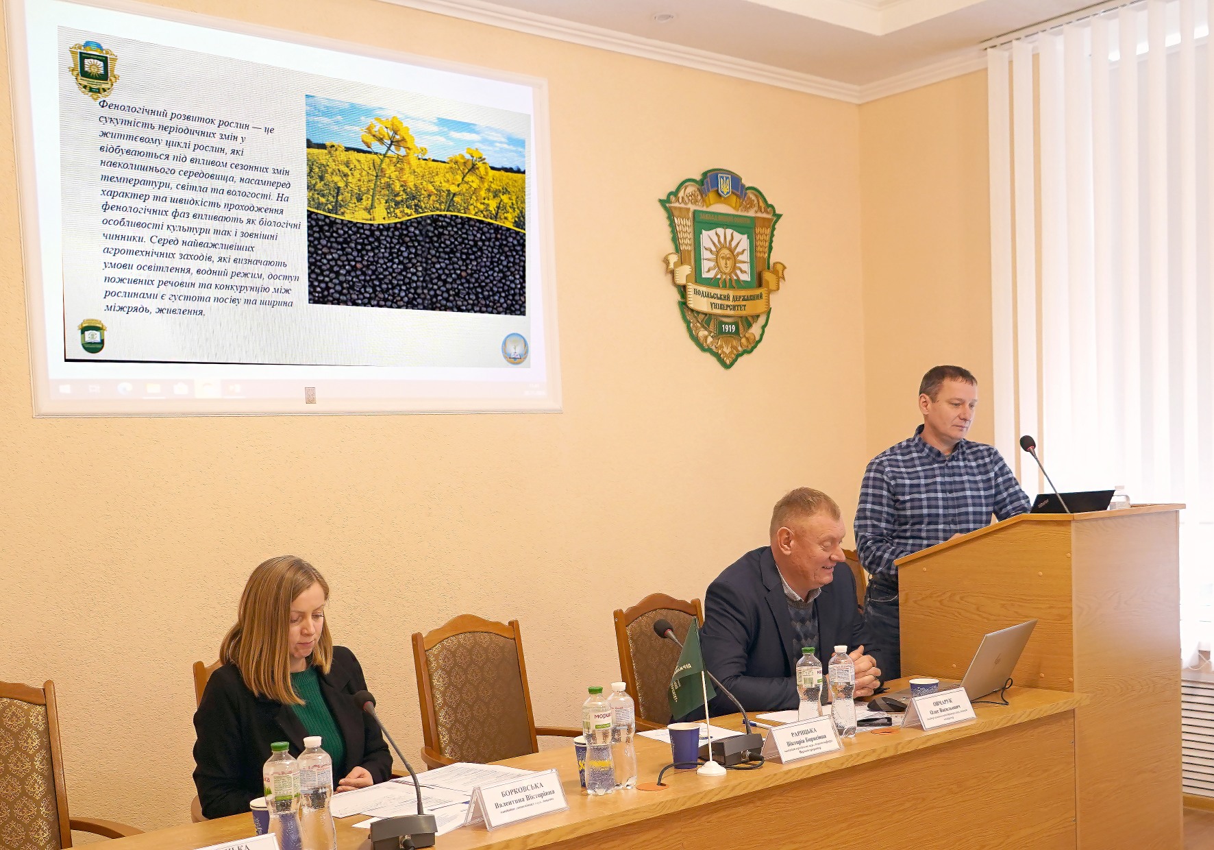 За темами наукових доповідей на пленарному засіданні виступили: Mikolaj CHMIEL (спеціаліст міжнародного відділу, Małopolska Hodowla Roślin Sp. z o.o., Poland) «Традиції та сучасність у національній системі селекції рослин»; SECRIERU Silvia (dr., conf. univ. Universitatea Tehnică a Moldovei) «Застосування ретардантних препаратів у технології вирощування озимої пшениці»; BACEAN Ion (dr., conf. univ. Universitatea Tehnică a Moldovei) «Стале використання природних ресурсів в Республіці Молдова в умовах зміни клімату»; МОСТІПАН Микола (кандидат біологічних наук, професор, завідувач кафедри загального землеробства Центральноукраїнського національного технічного університету) «Зміна щільності фітоценозу посівів пшениці озимої залежно від часу відновлення весняної вегетації в північному Степу України»; ГАФІЧ Діана (регіональний менеджер ТОВ КВС-Україна) «Сіємо в майбутнє з 1856 р. Селекційні програми та інновації насіннєвої компанії KWS»; ЖОВТУН Валентин (здобувач вищої освіти ступеня доктора філософії 2 курсу за спеціальністю 201 «Агрономія», менеджер ТОВ «НПЦ-Україна») «Особливості проходження фенологічних фаз розвитку озимого ріпаку з високим вмістом ерукової кислоти (High erucic acid rape (HEAR)) залежно від густоти посіву і ширини міжрядь»; ВІЛЬЧИНСЬКА Людмила (кандидат с.-г. наук, доцент кафедри рослинництва, селекції та насінництва ЗВО «ПДУ») «Селекція гречки: досвід українсько-польський»; ОВЧАРУК Олег (доктор сільськогосподарських наук, професор кафедри рослинництва, селекції та насінництва ЗВО «ПДУ») «Агродрони – інноваційні рішення в технологіях вирощування сільськогосподарських культур»; ХОМІНА Вероніка (доктор сільськогосподарських наук, професор, завідувач кафедри рослинництва, селекції та насінництва ЗВО «ПДУ») «Перспективи вирощування лікарських рослин в умовах Лісостепу західного».
