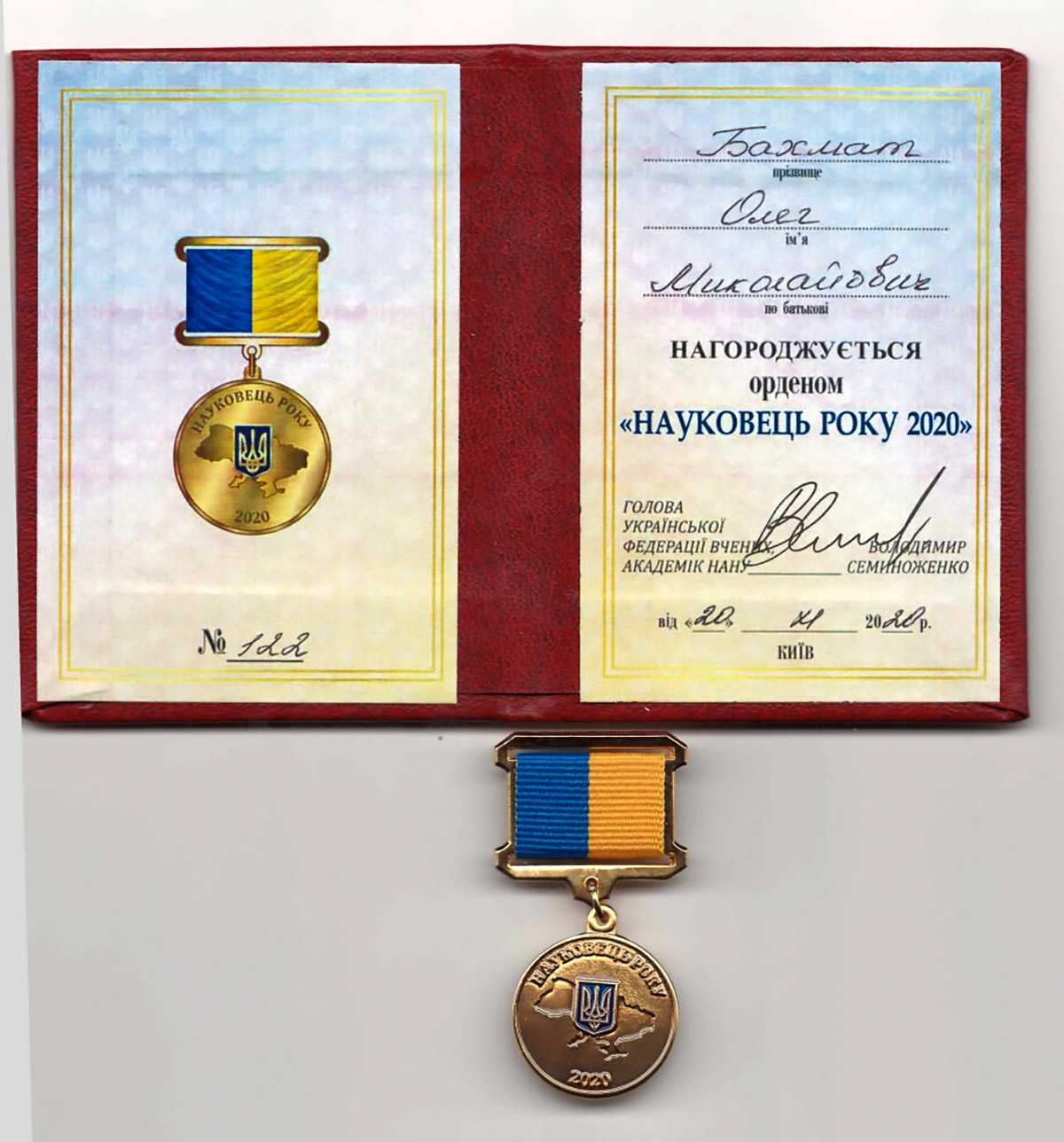 Олег Бахмат нагороджений орденом «Науковець року 2020» та почесною грамотою голови Української федерації вчених академіка НАНУ В.Семиноженка.