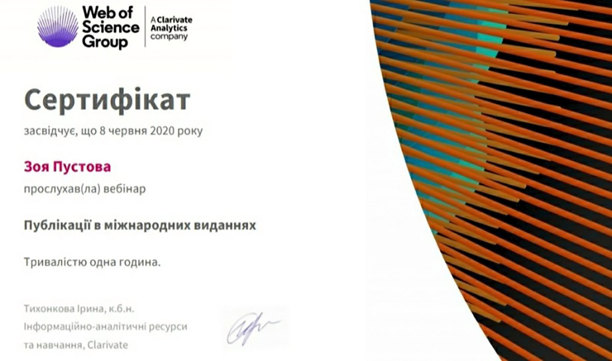 Доцент, кандидат с.-г. наук Пустова З.В. взяла участь у вебінарі на тему «Публікації в міжнародних виданнях», який відбувся 8 червня 2020 року.