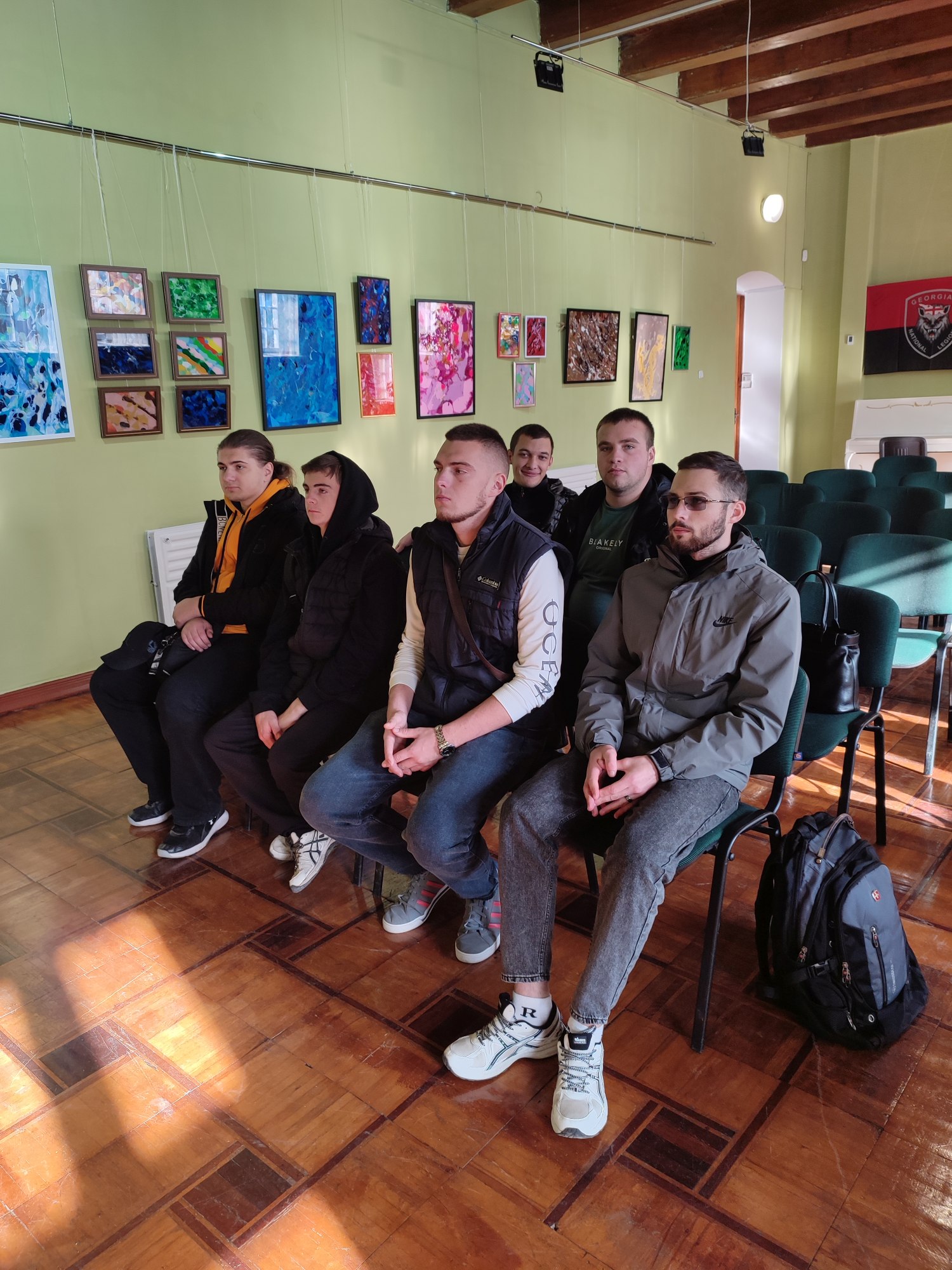 Студенти з цікавістю послухали розповідь про митця, розглянули його роботи та задонатили на Збройні Сили України, зокрема на допомогу Грузинському національному легіону.