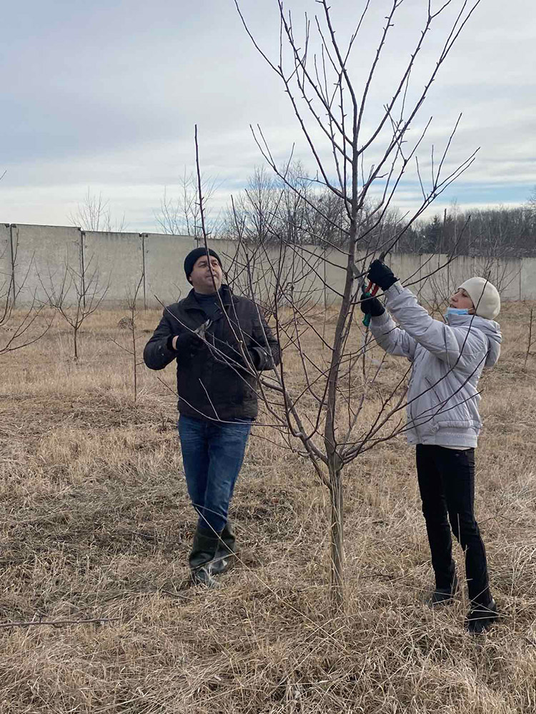 Під час проведення кафедрою науково-технічного супроводу на тему: «Особливості і цінність весняної обрізки та формування крони плодового саду», в ході агрозаходу було проведено інвентаризацію щеп, видалено засохлі дерева і сформовано крону.