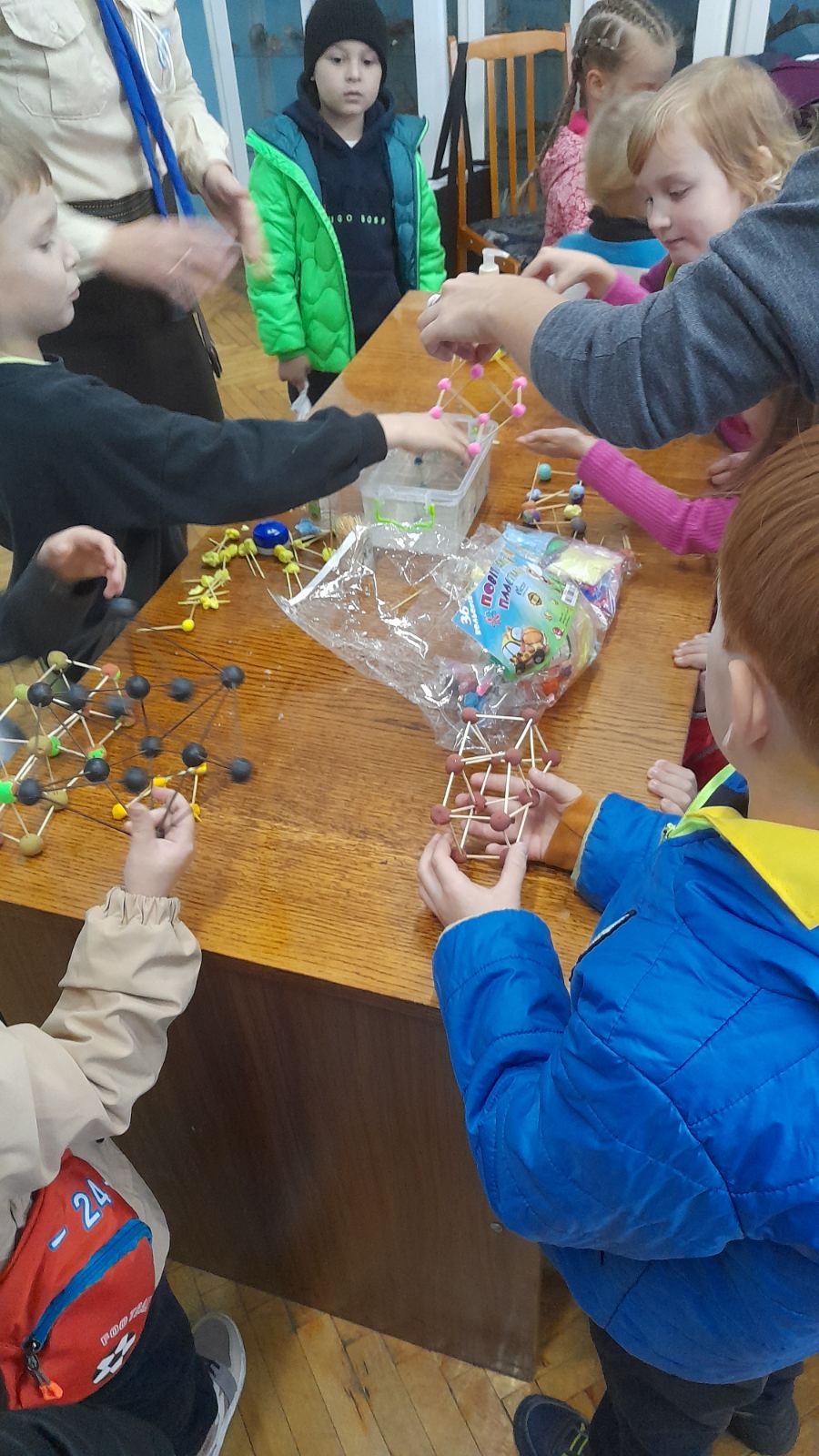 Під керівництвом сестрички Марини діти виготовляли макети кристалічних решіток мінералів, вивчали і грались у гру «Молекули». Під гітарний супровід братчика Тараса діти вивчили і співали пізнавальну пісню «Ще коли дерева говорили».