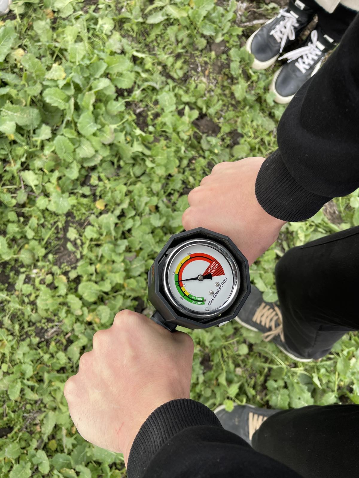 Головним інструментом став ґрунтовий щільномір. Під керівництвом доцента Михайла ХОМОВОГО здобувачі вищої освіти навчилися правильно його використовувати: встановлювати вертикально, плавно уводити і фіксувати опір на відповідній глибині ґрунту для аналізу.