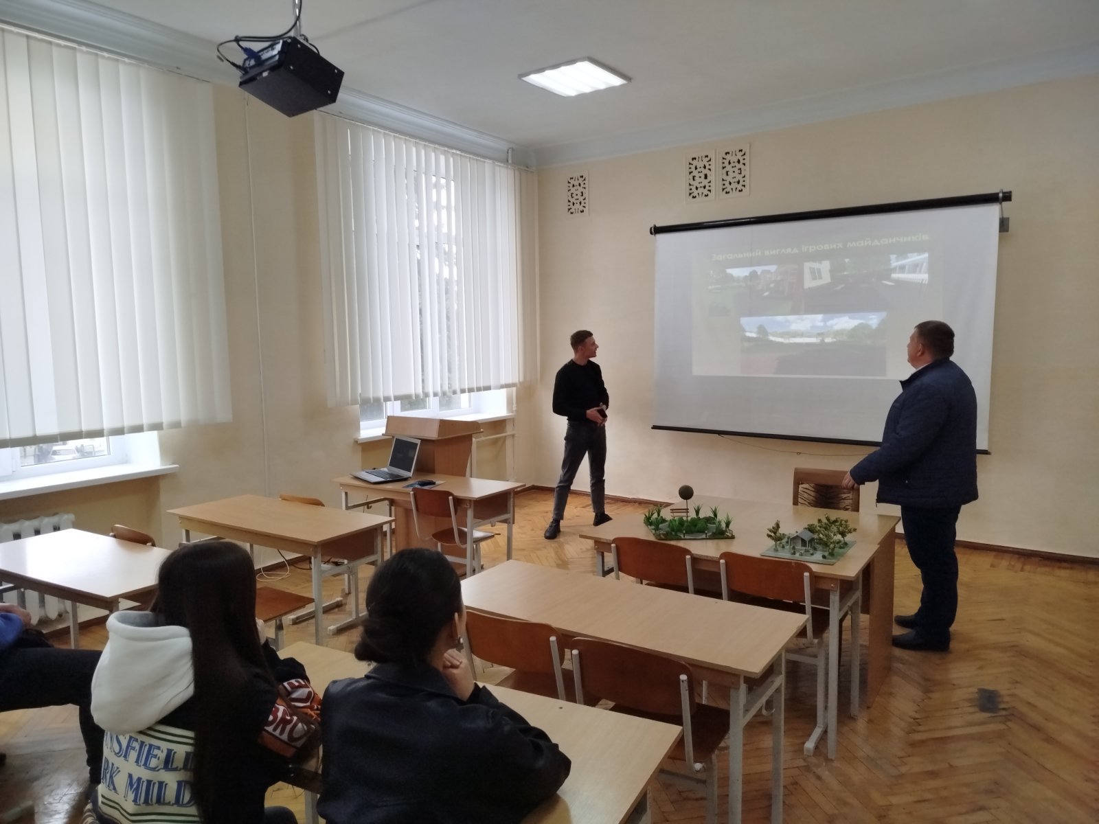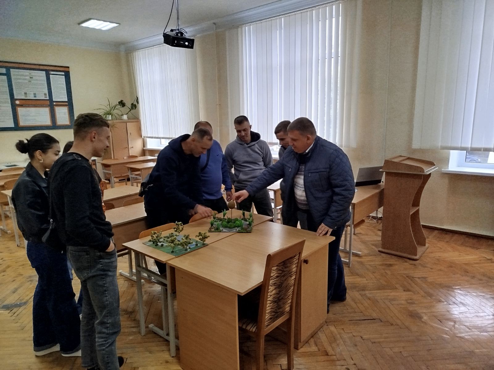 Керівник наукового гуртка доцент кафедри садово-паркового господарства, геодезії та землеустрою Петро БЕЗВІКОННИЙ розповів здобувачам вищої освіти про сучасні тенденції у сфері проектування садово-паркових об`єктів, а також відзначив важливу роль молоді у продукуванні інноваційних ідей та подальшій їх реалізації на практиці.