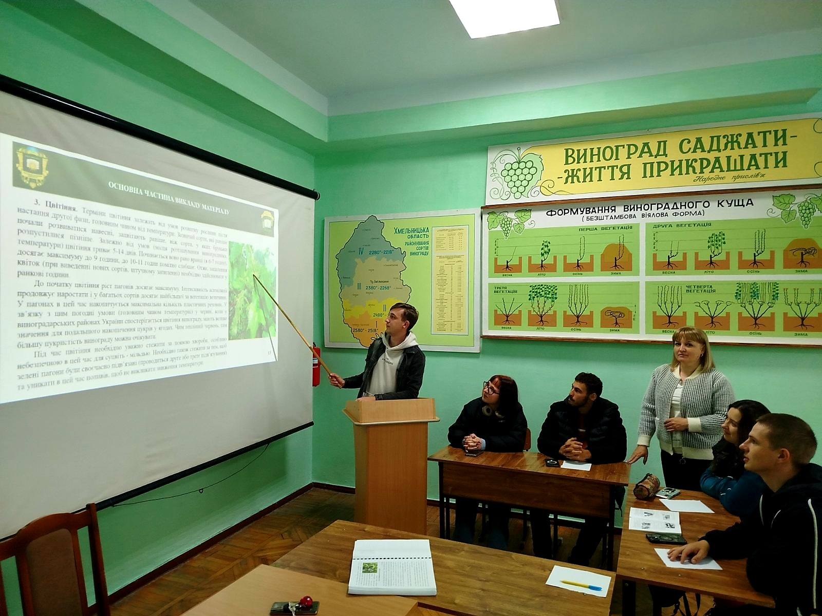 Наразі спеціалізовані виноградно-виноробні підприємства Поділля, які мають власну сировинну базу, переробні потужності та випускають готову до споживання продукцію, є одними з найуспішніших. З урахуванням цього робота гуртка орієнтована на співпрацю з виробничниками та навчання через практичний досвід. Агрометеорологічні фактори умов успішного вирощування винограду, перебувають у центрі уваги через різкі зміни клімату. Рослини феногруп раннього початку вегетації внаслідок аномально теплих зимових місяців почали вегетацію зі значним випередженням, водночас різкі зниження середньодобових температур, часті весняні приморозки спричинили затримку початку вегетації винограду. Таким чином, правильне застосування агротехнічних прийомів на винограднику сприятиме формуванню винограду та планування майбутнього урожаю до стійких умов зміни клімату.