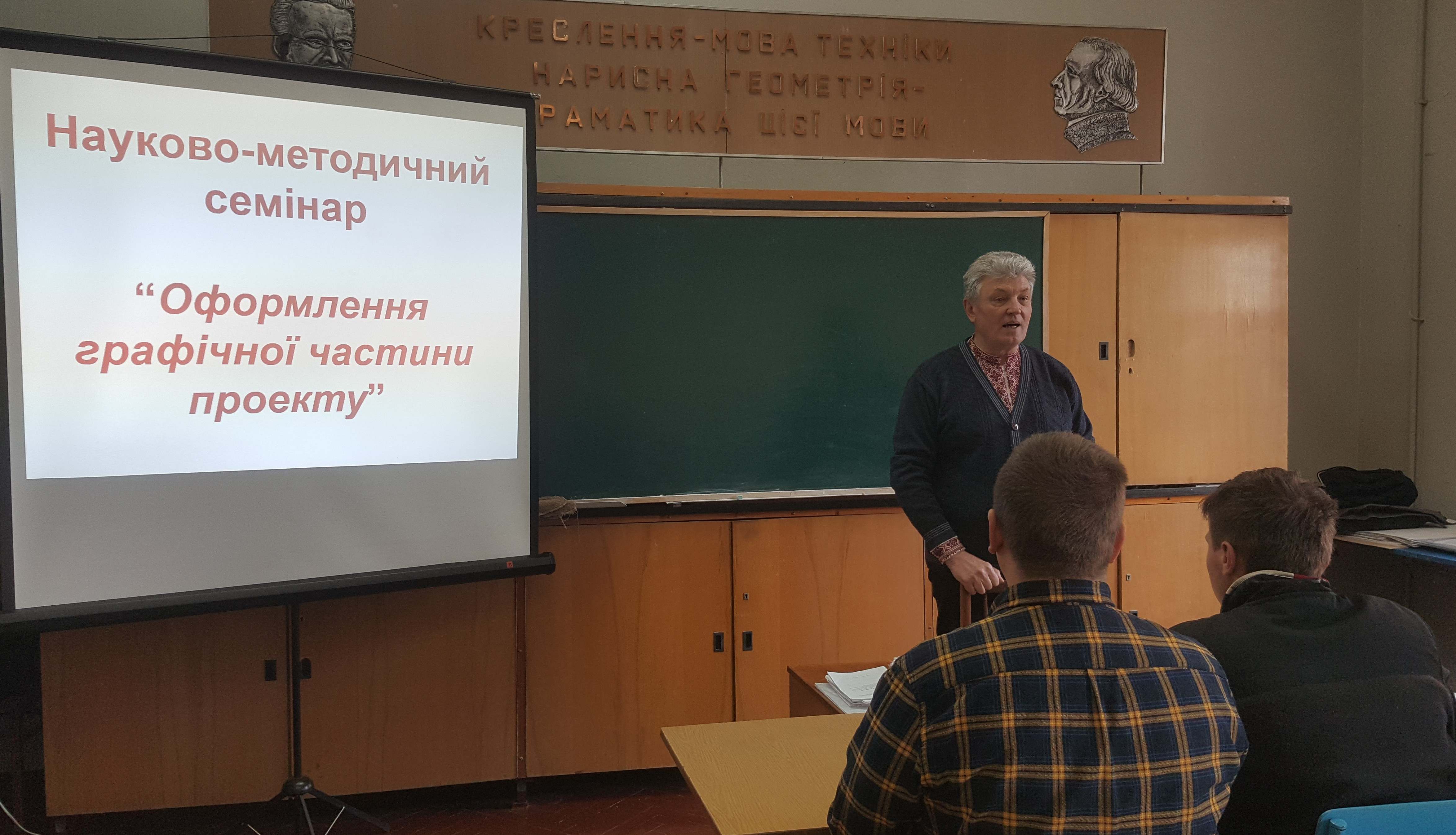 На семінарі розглянули актуальні питання оформлення графічної частини проєктів, методики подання ілюстративної частини дипломних та наукових робіт, відповідності графічних та ілюстраційних матеріалів державним стандартам здобувачами вищої освіти інженерно-технічного факультету. Під час семінару акцентовано увагу на сучасних вимогах до виконання креслеників, схем, оформлення плакатів, презентацій і графіків у дипломних проєктах та наукових роботах. Студенти на семінарі також отримали настанови щодо самостійної роботи над креслеником і рекомендації з оформлення графічної частини проєктів та наукових робіт.