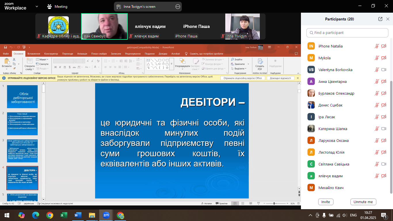 1 квітня 2025 року на кафедрі обліку, оподаткування та технологій електронного бізнесу відбулась гостьова лекція на тему "Облік дебіторської заборгованості", яку провів доктор економічних наук, професор, професор кафедри обліку і оподаткування Білоцерківського національного аграрного університету Свиноус Іван Вікторович.
