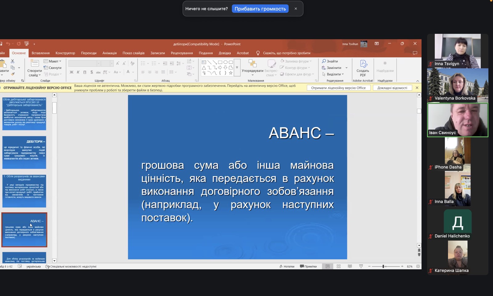 Під час зустрічі професор Іван СВИНОУС висвітлив актуальні питання обліку дебіторської заборгованості в сучасних умовах, особливості оцінки, управління та контролю цього виду заборгованості в бухгалтерському обліку підприємств. Особливу увагу було приділено питанням ризиків, методам їхнього зменшення та впливу дебіторської заборгованості на фінансову стабільність компаній.