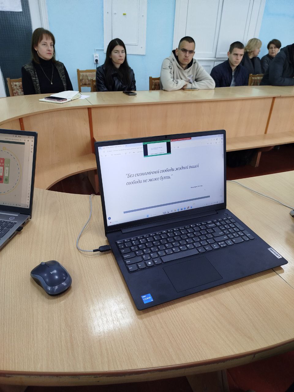 Тема лекції: «Реалії сьогодення роботи економічних фахівців», яка розпочалась з цитати Маргарет Тетчер: «Без економічної свободи жодної іншої свободи не може бути».