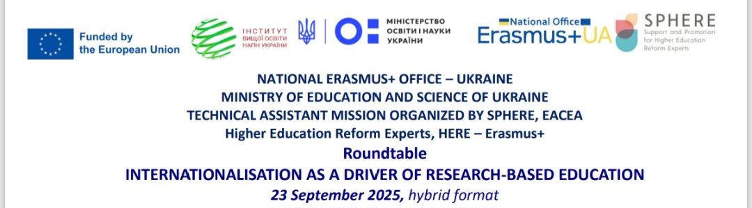 23 вересня 2025 року науково-педагогічні працівники кафедр економіки, підприємництва, торгівлі та біржової діяльності; менеджменту, публічного управління та адміністрування і здобувачі третього (освітньо-наукового) рівня вищої освіти спеціальності 051 Економіка та 073 Менеджмент взяли участь у Міжнародному круглому столі «Інтернаціоналізація як рушійна сила розвитку вищої освіти, заснованої на дослідженнях», організованому Національною академією освітніх наук України (НАЕSU) спільно з міжнародними партнерами.
