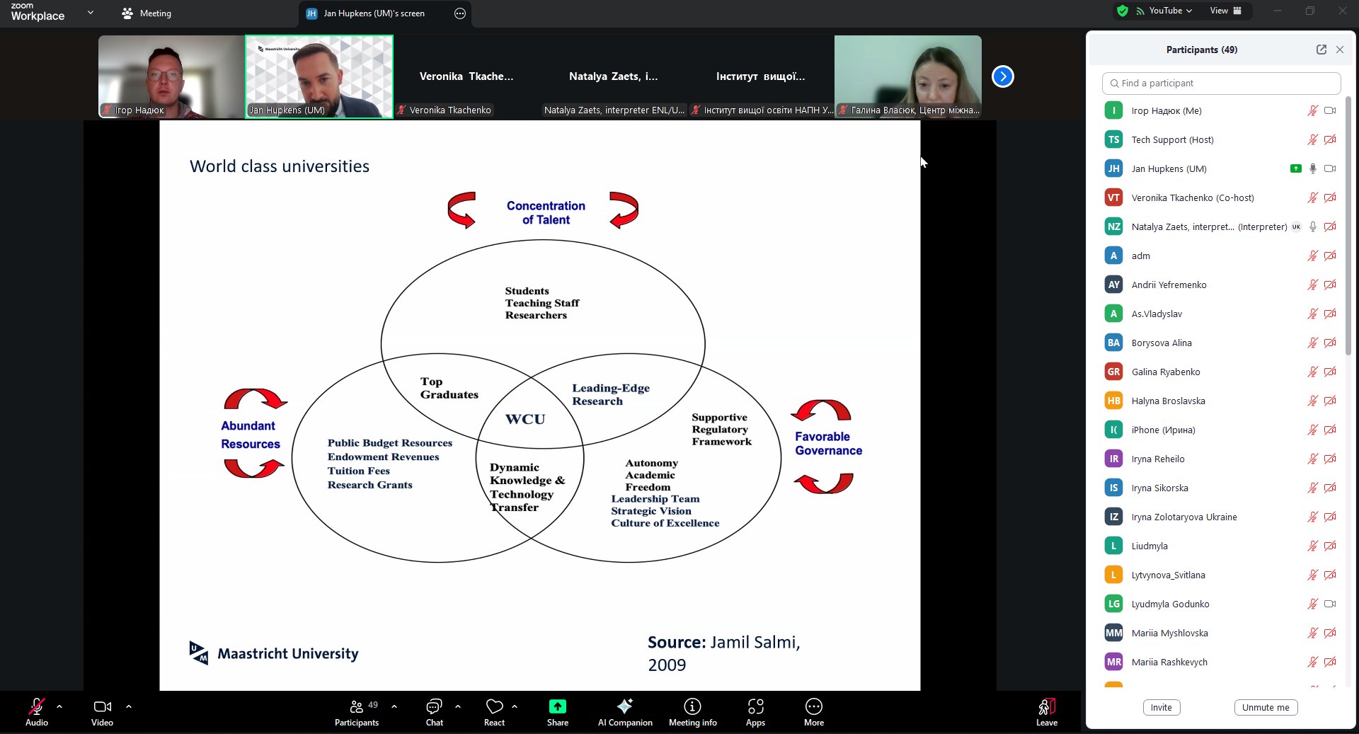 Серед ключових спікерів були: Ян ХУПКЕНС (старший радник з політики інтернаціоналізації Маастрихтського університету), представники Міністерства освіти і науки України, координатори національної програми Erasmus+ в Україні, а також експерти з питань цифрового університету, спільних магістерських програм та академічної мобільності.