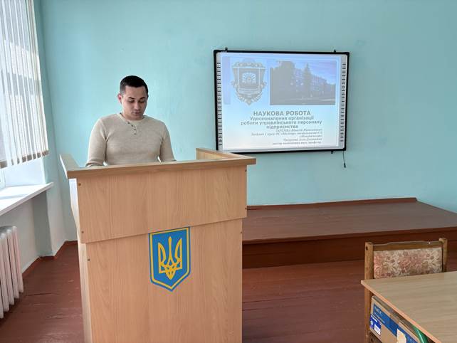 І місце: Віталій ЗАРЕМБА «Удосконалення організації роботи управлінського персоналу підприємства» (науковий керівник д-р. екон. наук, професор, зав. кафедри Алла ЧИКУРКОВА);
