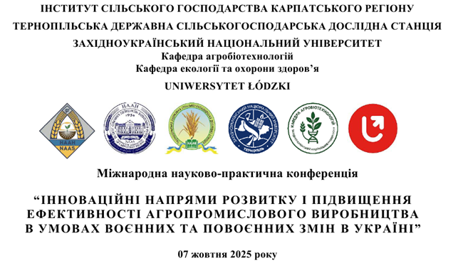 7 жовтня 2025 року науково-педагогічні працівники ЗВО «ПДУ» взяли активну участь у Міжнародній науково-практичній конференції «Інноваційні напрями розвитку і підвищення ефективності агропромислового виробництва в умовах воєнних та повоєнних змін в Україні», яка проводилась на базі Тернопільської державної сільськогосподарської дослідної станції Інституту сільського господарства Карпатського регіону НААН України.