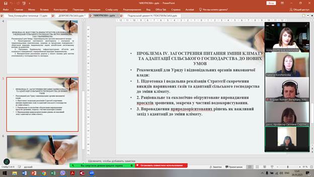 Алла ЧИКУРКОВА, д-р екон. наук, професор, завідувач кафедри менеджменту, публічного управління та адміністрування. Тема доповіді: «Управління процесами відновлення аграрного сектору економіки: виклики сьогодення і перспективи вирішення». У доповіді Алла ЧИКУРКОВА проаналізувала управлінські та економічні аспекти відновлення аграрного сектору в умовах війни та кліматичних змін. Вона запропонувала стратегії подолання сучасних викликів.