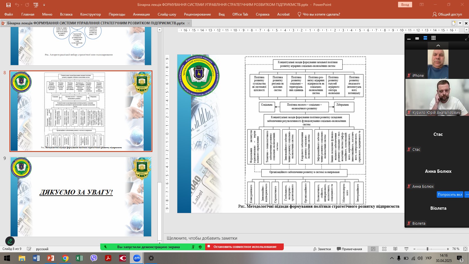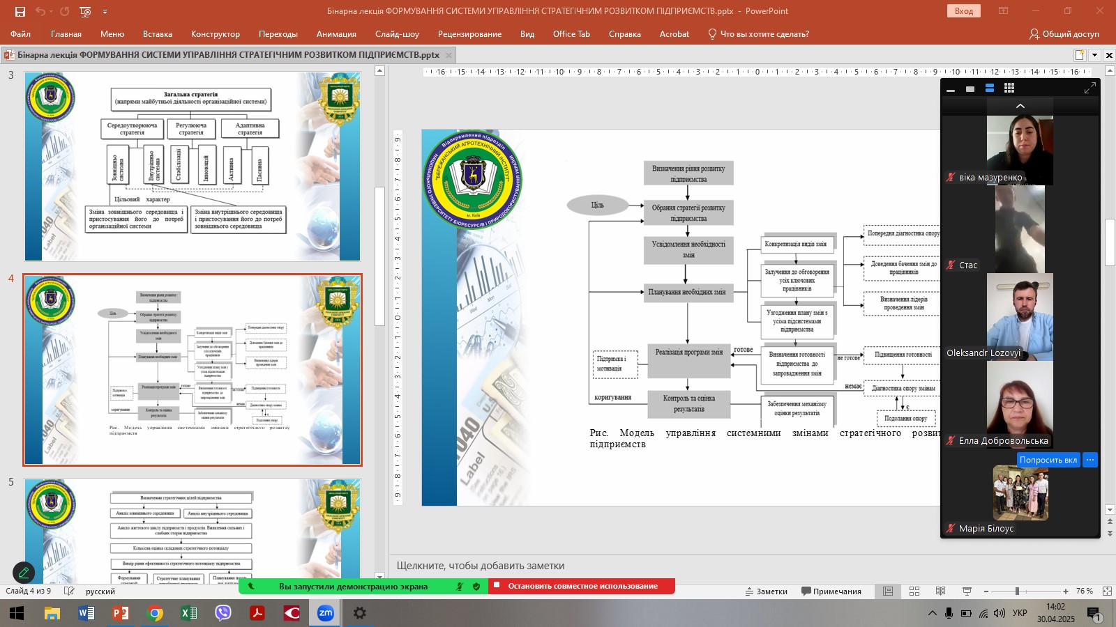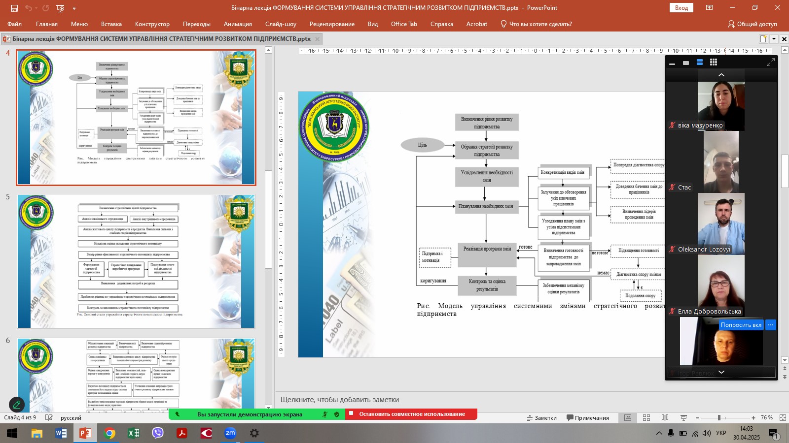 В рамках педагогічного стажування викладачів кафедри менеджменту, публічного управління та адміністрування ЗВО «ПДУ» 30 квітня 2025 року була проведена міжвузівська бінарна лекція доктором економічних наук, професором Аллою ЧИКУРКОВОЮ та гостьовим лектором, фахівцем зі стратегічного управління, яка має значний досвід у підготовці фахівців з менеджменту, доктором економічних наук, професором, професором кафедри економіки і менеджменту ВП НУБіП України «Бережанський агротехнічний інститут» Світланою СУДОМИР. Тема лекції: «Формування системи управління стратегічним розвитком підприємств».