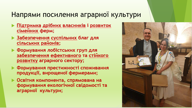В процесі жвавого обговорення було акцентовано увагу, що аграрна культура — це не лише про виробництво їжі. У світі конфліктів, зміни клімату та економічної нестабільності, вона є опорою для миру. Оскільки: